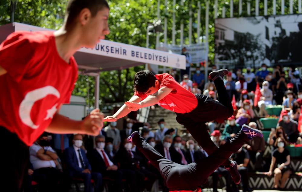 İnegöl Gençlik Merkezi’nin folklor gösterisi ile devam eden tören, Bursa Büyükşehir Belediyespor karate gösterisi ve Yıldırım Belediyespor güreşçilerinin jimnastik gösterisi ile sürdü.