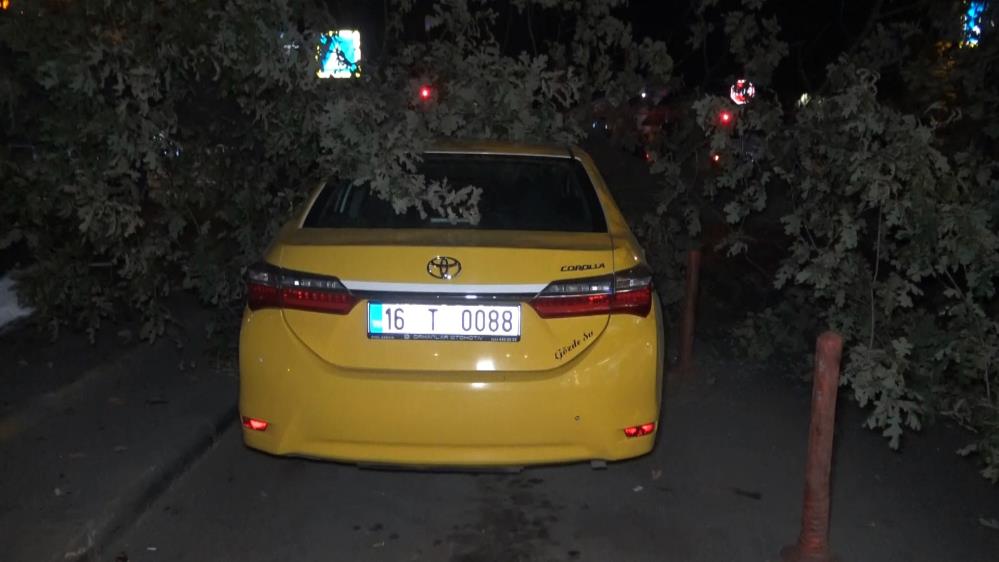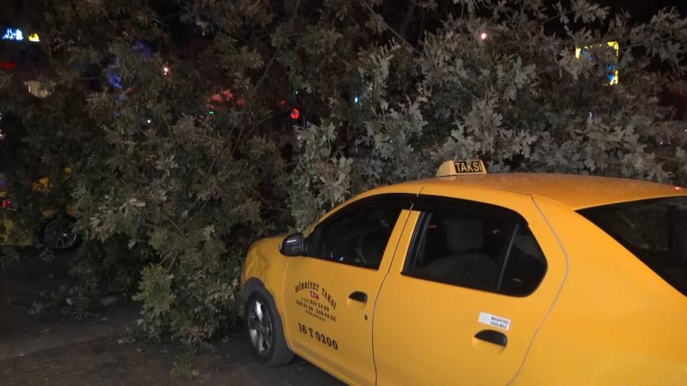 Osmangazi ilçesi Hürriyet Mahallesi’nde Hürriyet Taksi Durağı yanında bulunan 193 yaşındaki anıt ağacın dalı çürümesi sonucu 2 ticari taksinin üzerine devrildi.