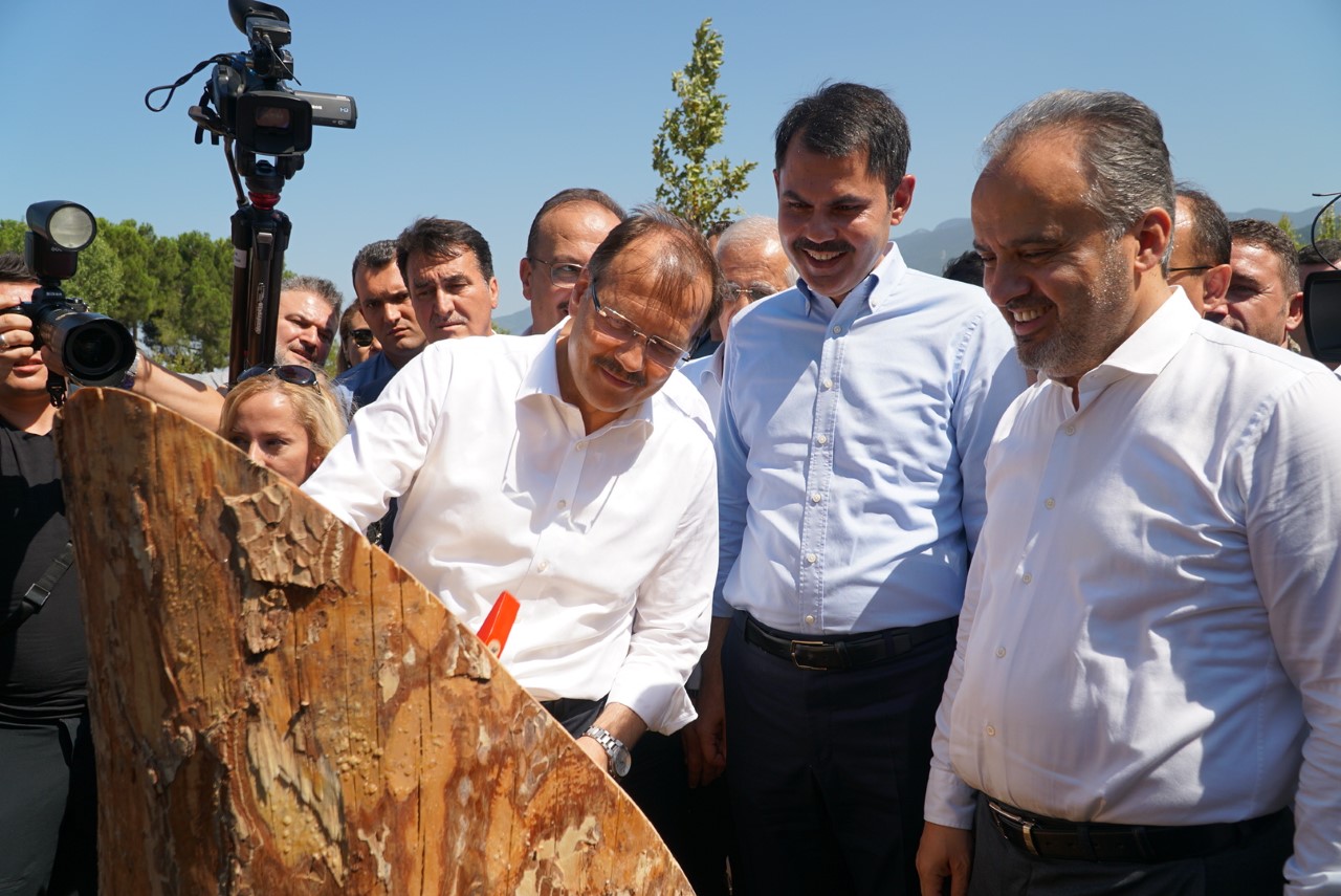 Çevre, Şehircilik ve İklim Değişikliği Bakanı Murat Kurum bir dizi ziyaret için Bursa’ya geldi. Bakan Kurum’un ilk adresi 75 bin konutun enerji ihtiyacını karşılayacak İnegöl Doğu Bölgesi Entegre Katı Atık Tesisi oldu. Büyükşehir Belediyesi tarafından kente kazandırılan, halen saatte 6 megavat enerji üreten ve yılsonuna kadar 12 megavat üretime ulaşacak tesisin açılışını yapan Bakan Murat Kurum, 5 ilçeye hizmet veren tesisin sene sonunda tam kapasiteye ulaşacağını söyledi. Kurum, “Tesis, Bursa’nın toplam atığının yüzde 40’ını dönüştürecek. Aynı zamanda buradan elde edilecek enerji üretimiyle 75 bin konutumuzun enerji ihtiyacı karşılanacak. Ancak bununla yetinmeyeceğiz, Belediyemizin yanında olmaya devam edeceğiz. Batı tesisimizi 2024 yılında tamamlayacak, Bursa’nın tamamında atıkları ekonomiye kazandıracağız. Bursa’nın ekonomisini, yavrularımızın sağlıklı yarınlarını en güçlü hale getireceğiz ” dedi.