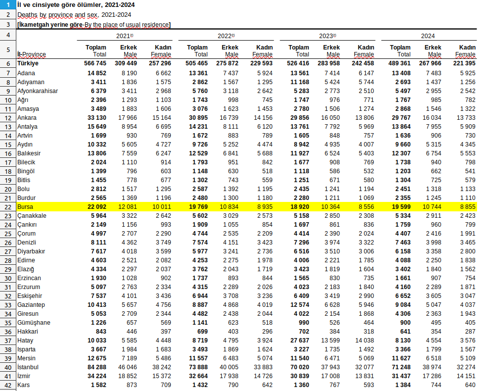Bursa’da 2024 yılında 19 bin 599 vefat yaşandı…