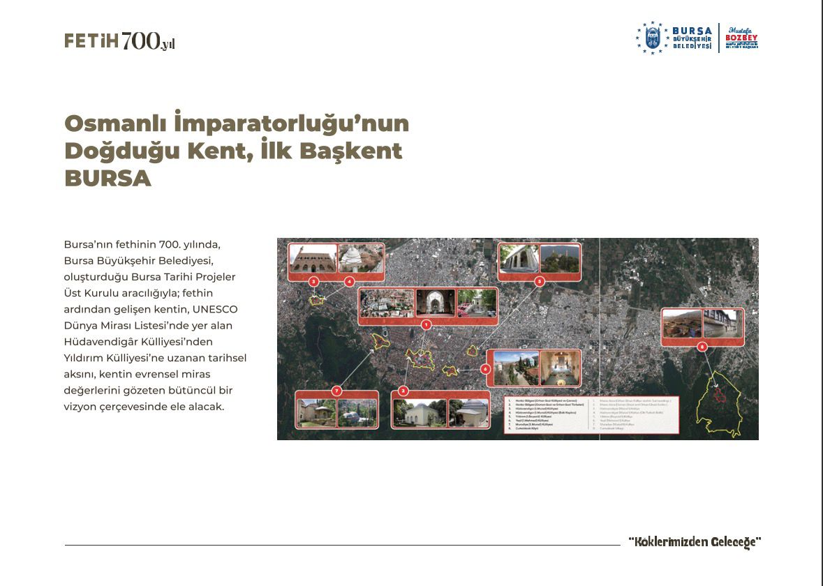 Alaaddin Bey Camii, Yoğurtçu Baba Haziresi, Emir Sultan Camii hazire-mezarlık alanı ve Bursa surlarında bakım ve restorasyon çalışmaları yapılacak. Fetihkapı kazamat mahalli “Bursa Miras Bilgilendirme Hizmet Birimi”ne dönüştürülecek.