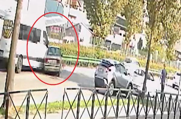 Öte yandan kaza anı bir iş yerinin güvenlik kamerası görüntülerine anbean yansıdı. Görüntülere; bir otomobilin yolcu indirmek için durduğu, başka bir otomobilin duran başka bir araca çarptığı ve savrulan otomobile servis minibüsünün çarptığı anlar yansıdı.