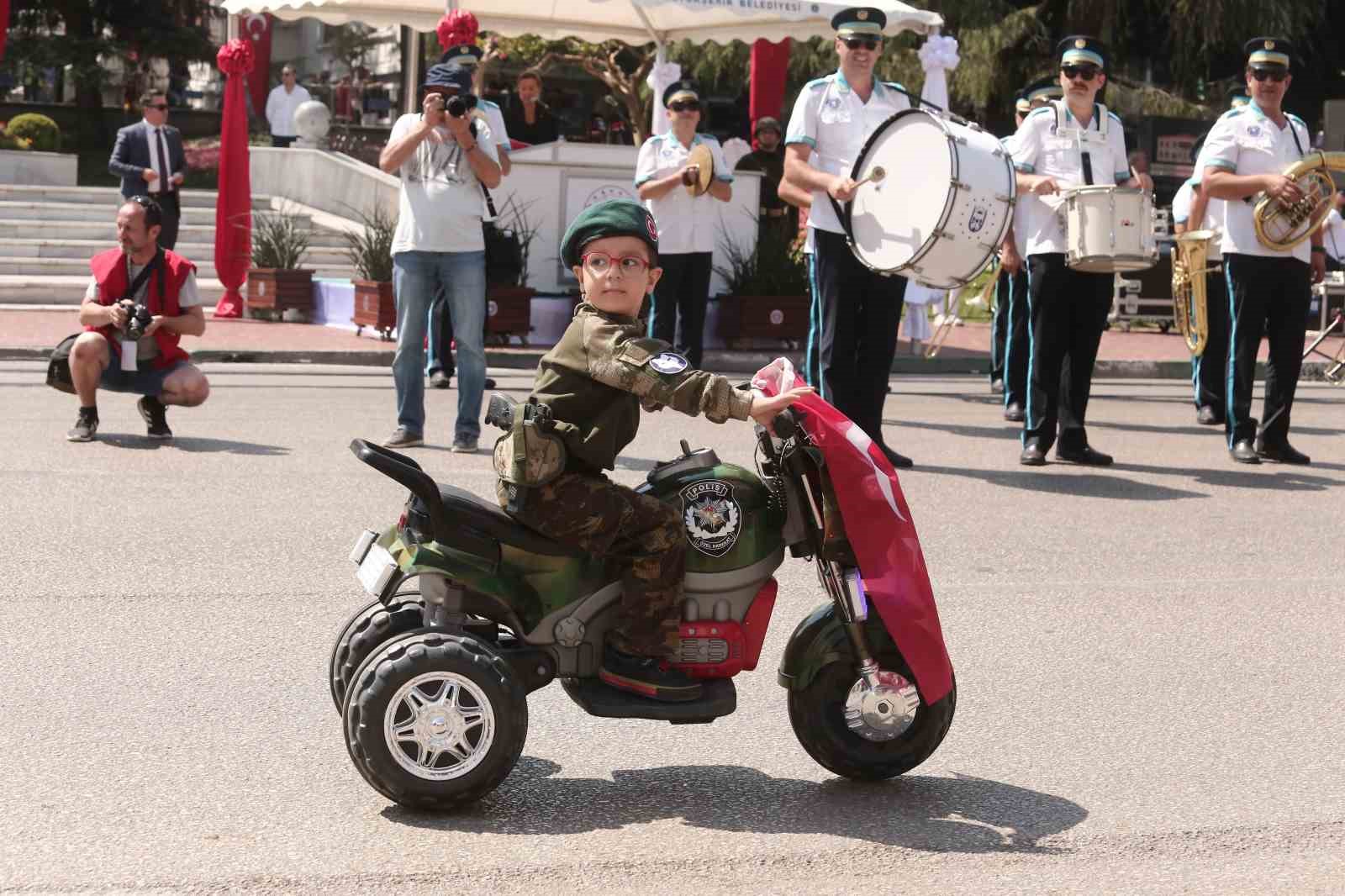 Resmi geçit sırasında akülü motoruna bağladığı çakar sistemiyle askerlerin yanında geçite dahil olan çocuk, geçiş sırasında dikkatleri üzerine çekti. Asker kıyafetli çocuğu gören vatandaşlar, o anları cep telefonlarıyla ölümsüzleştirdi.