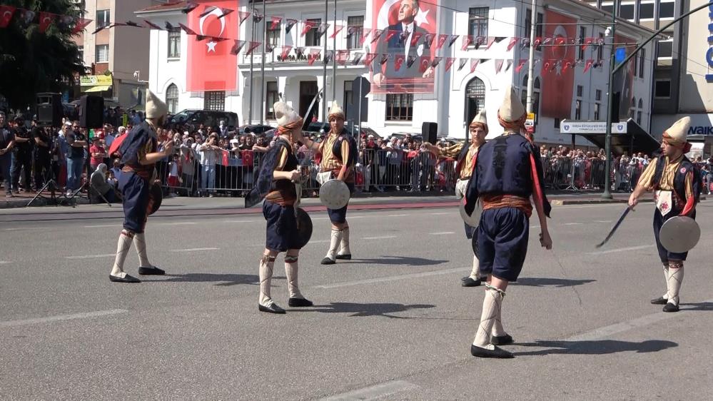 Günün anlam ve önemini anlatan konuşmayı Yüzbaşı Mustafa Çetin yaptı. Bursa Mehter Takımı ve Tahtakıran Kılıç-Kalkan ekibinin gösterileri sonrası program resmi geçitle devam etti.