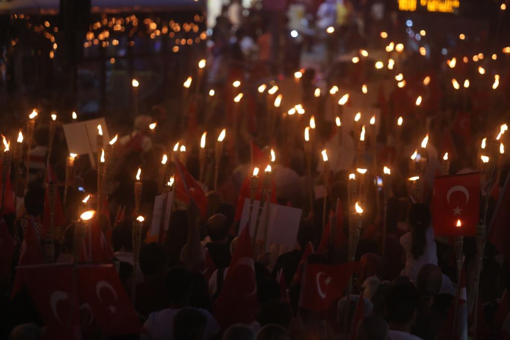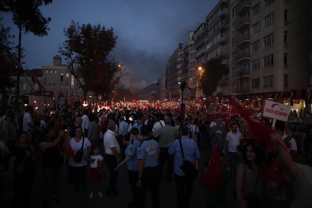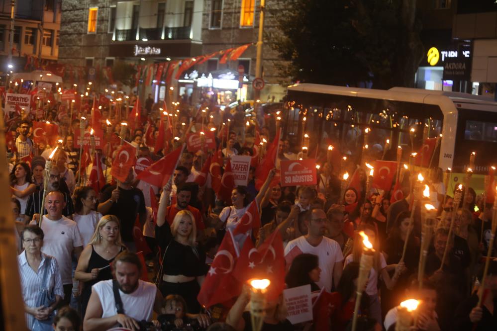 Heykel’deki tarihi belediye binası önünde başlayan yürüyüşe CHP Bursa Milletvekilleri Hasan Öztürk, Orhan Sarıbal, Bursa Büyükşehir Belediye Başkanı Mustafa Bozbey, Osmangazi Belediye Başkanı Erkan Aydın, CHP İl Başkanı, yöneticiler, partililer ve binlerce Bursalı katıldı. Çakırhamam ve Altıparmak Caddesi’ni takip eden fener alayı Atatürk Stadyumu Meydanı’na geldi.