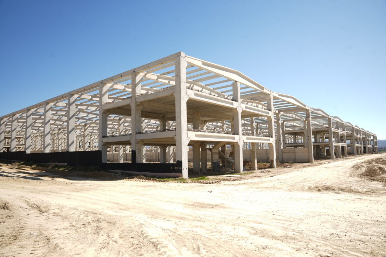 Yaklaşık 320 dönümlük dev bir alanda yükselen projede gelinen son nokta hakkında bilgi veren YTSO Başkanı Orhan Torun, hafriyat ve altyapı hazırlıklarının büyük oranda tamamlandığını, artık prefabrik yapıların kolonlarının dikilmeye başlandığını söyledi.