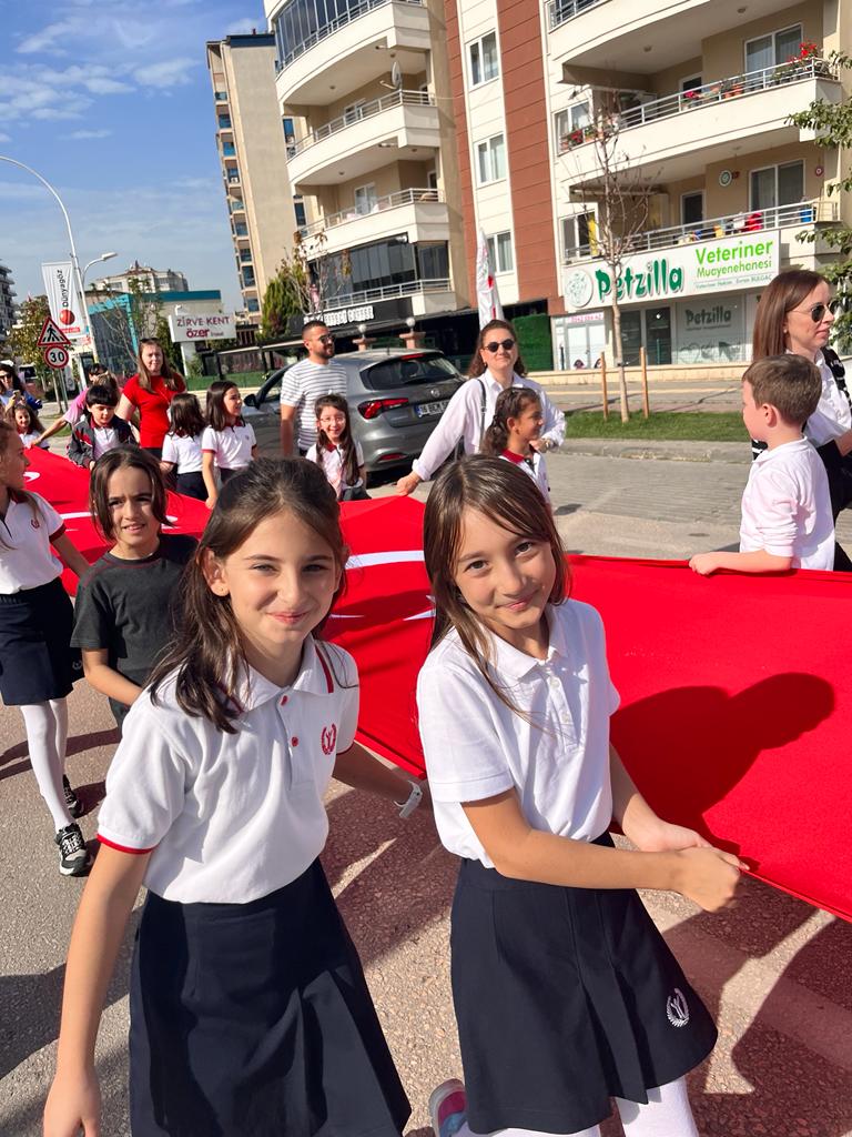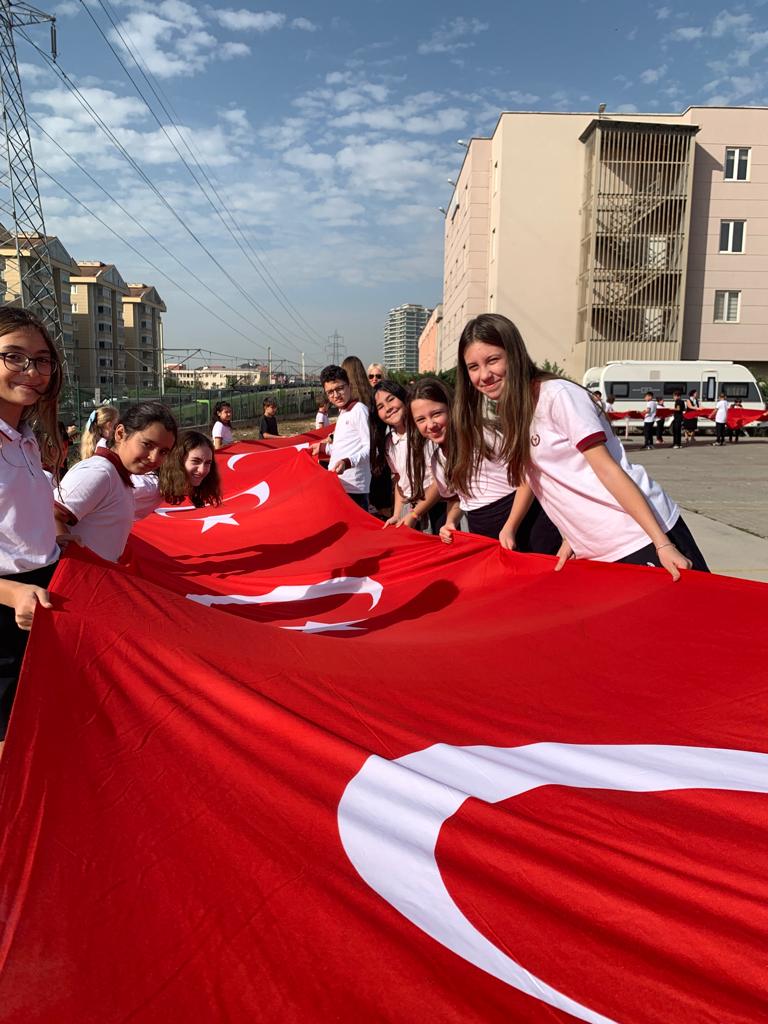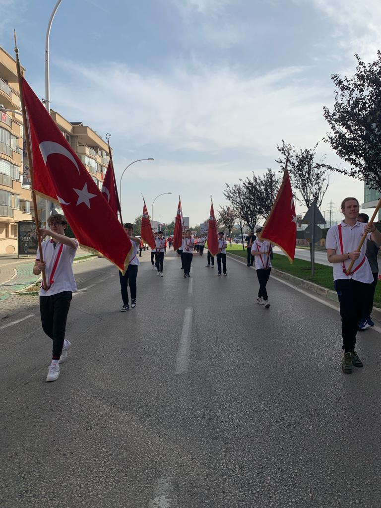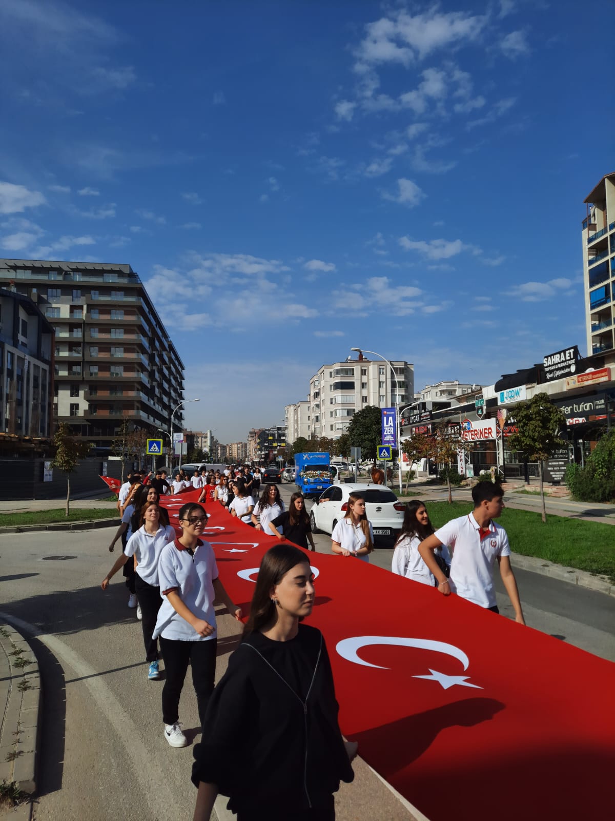 Yaklaşık iki km’lik güzergah boyunca yaklaşık 600 öğrenci omuzlarının üzerinde yükselen Türk Bayrağı, Cumhuriyet gururunu Bursalılarla paylaştı.