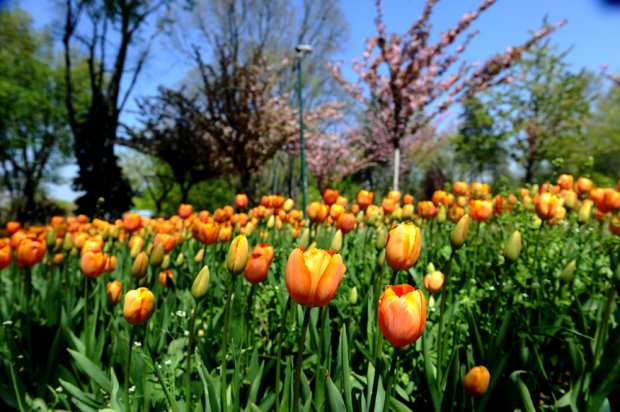 Büyükşehir Belediyesi’nce dikilen milyonlarca lalenin baharla birlikte açmaya başlaması adeta görsel bir şölene dönüştü.