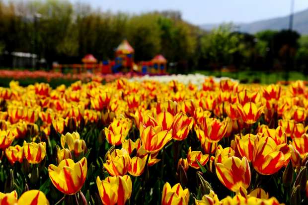 Bursa Kültürpark’ta da yol kenarları ve yeşil alanlara ekilen laleler renk cümbüşü oluşturdu. Turuncu, sarı renklerin ağırlıkta olduğu laleler parka farklı bir güzellik katıyor. Çay bahçeleri, yeşil alanları, çocuk oyun parkları ve çeşitli sivil toplum kuruluşlarının bulunduğu Kültürpark’a Bursalıların ilgisi hiç azalmıyor.