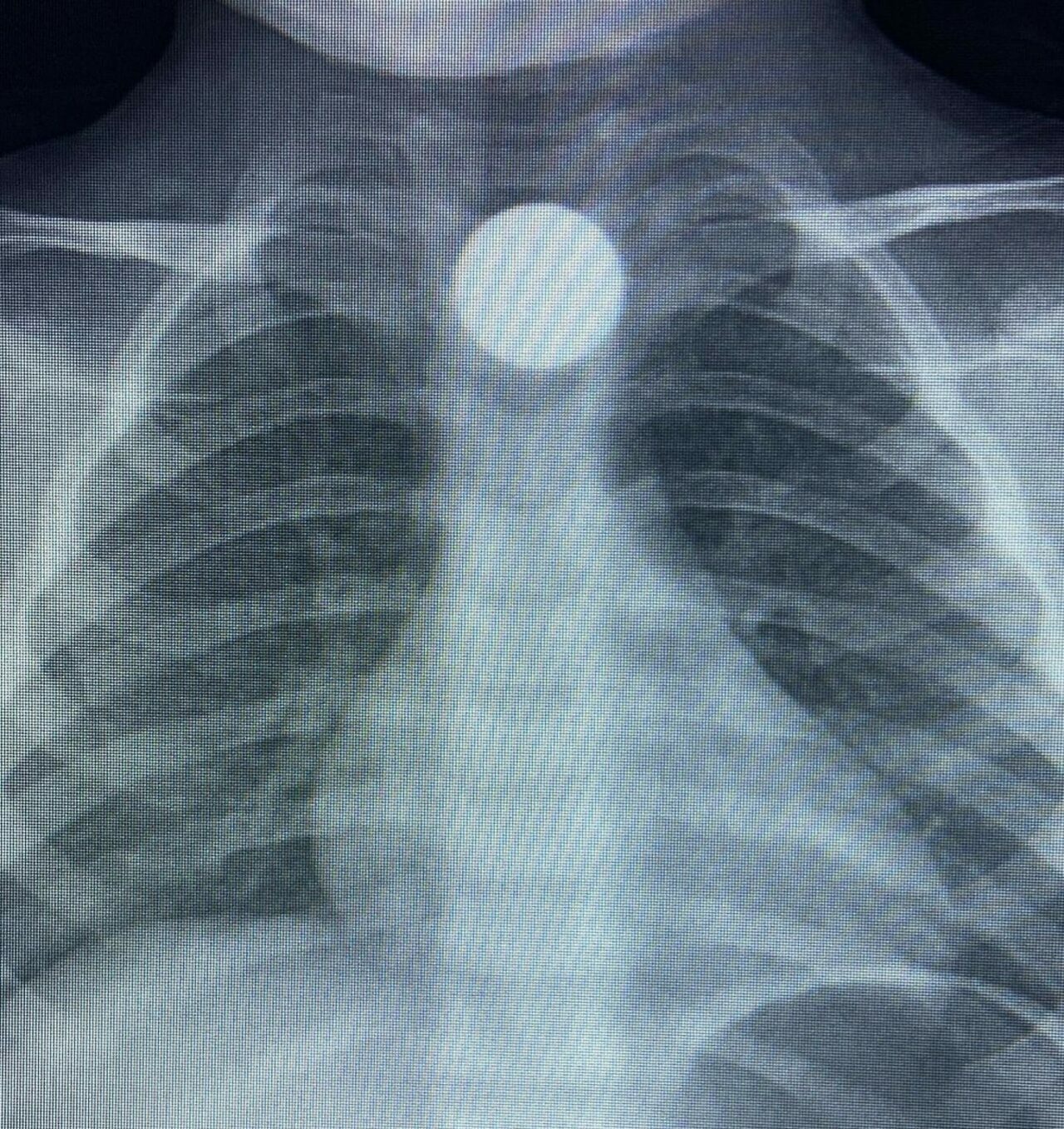 Yapılan tetkiklerde yemek borusunda takılı kalan madeni para görüldü.