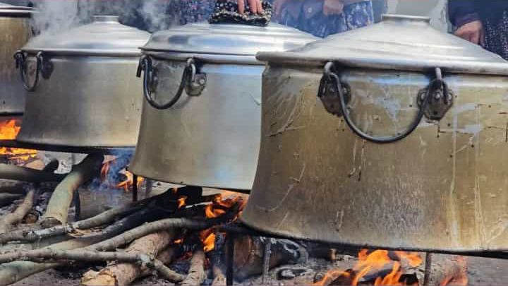 Tüm köy sakinleri imece usulü kazanlarda tonlarca ‘Dede aşı’ herkes tarafından çok seviliyor.