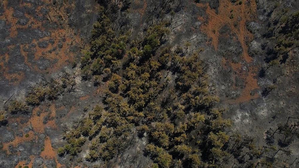Yangın bölgeleri drone ile havadan görüntülenerek acı tabloyu gözler önüne serdi.