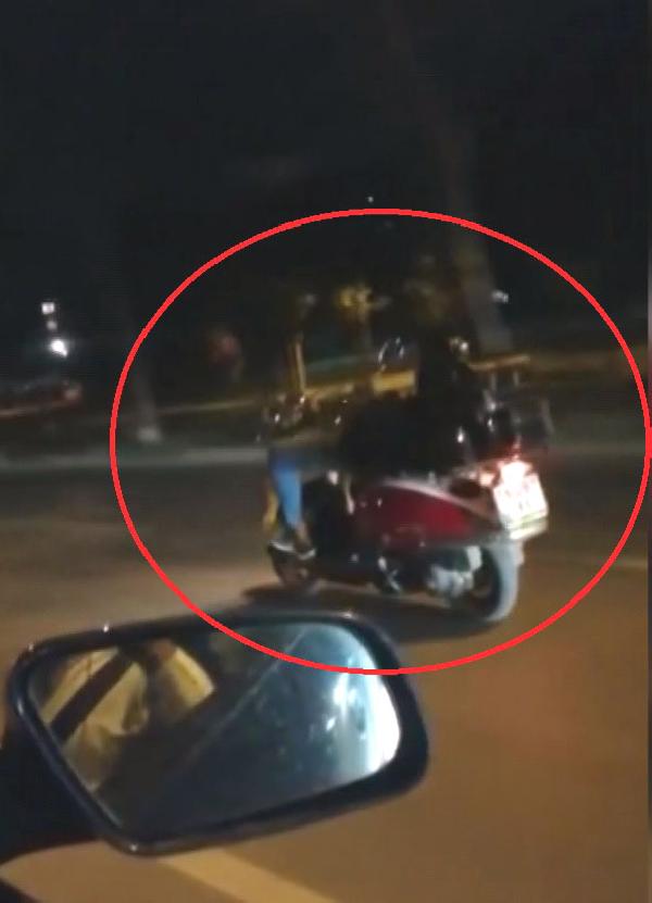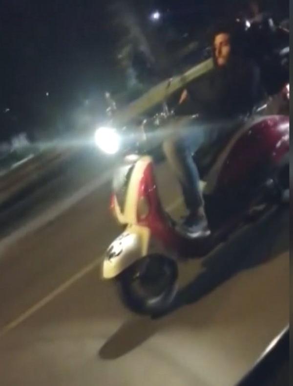 Cep telefonu kamerasıyla kaydedilen görüntülerde, sürücü seyir halindeki motosikletin sele kısmına sırtüstü yatmış halde görülüyor.