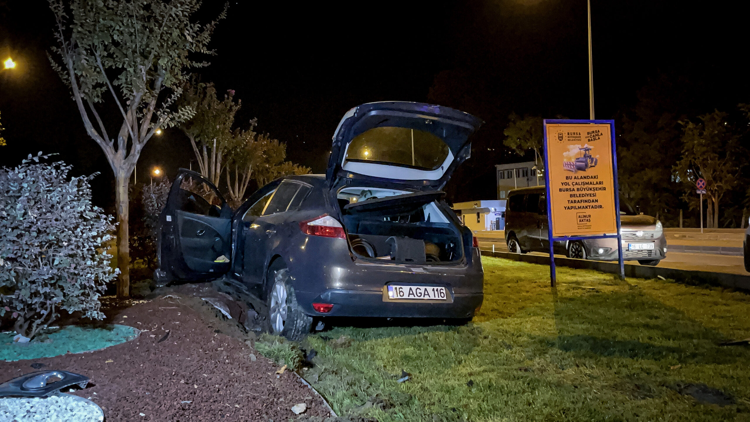 Otomobil, Osmangazi ilçesi Oulu Caddesi’nde polis aracına ve refüje çarpınca durduruldu.
