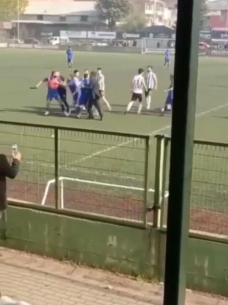 90+3 dakikada oyundan çıkan Burak Işıklar kulübeden saha içinde girerek rakip takımın oyuncusu Melik Taşkesen’e ayağından çıkardığı kramponla saldırdı.