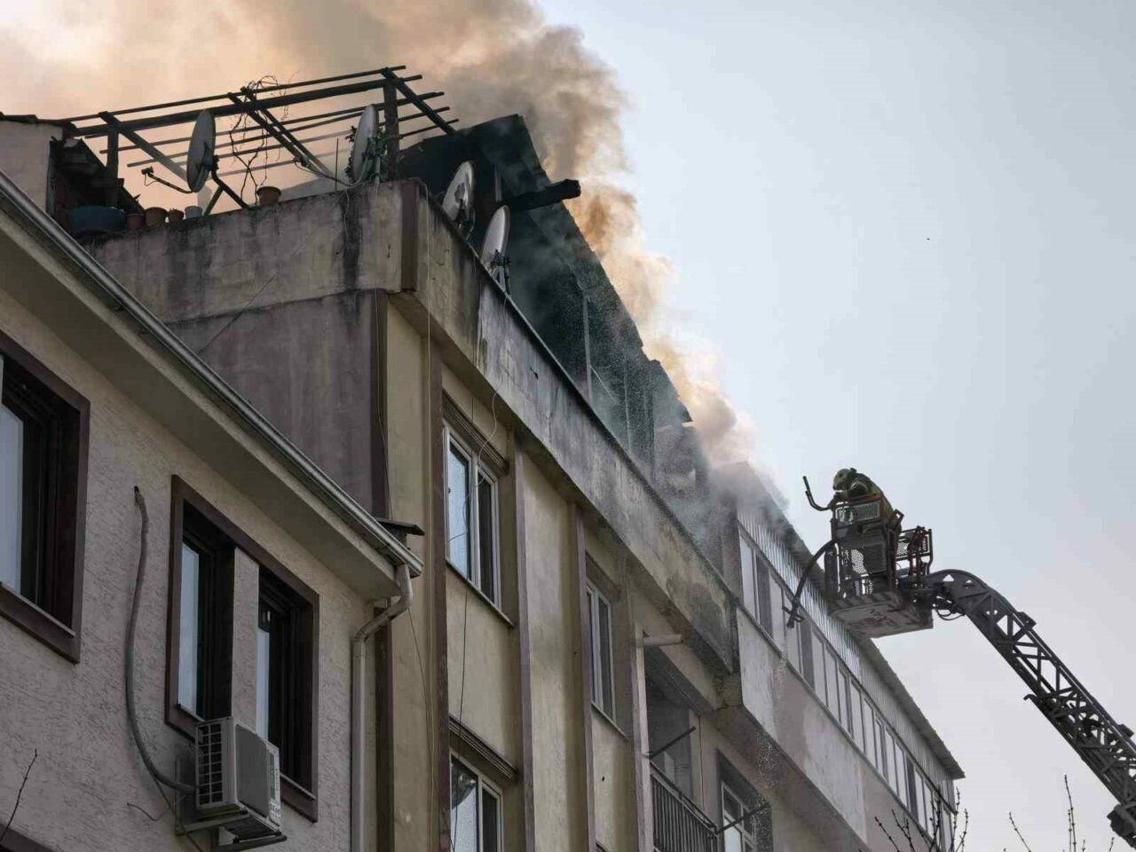 Kısa sürede büyüyen alevler terası sararken, yangını gören bitişik binada oturan bir kadın panik yaşayarak çığlık attı. Kadının eline aldığı kovayla yardım istemesi dikkat çekti. Terasında yangın çıkan bina sakini de itfaiye ekiplerinden yardım talep etti. İhbar üzerine olay yerine çok sayıda itfaiye ekibi sevk edildi. Ekiplerin yaklaşık 1 saat süren müdahalesi sonucu yangın kontrol altına alınarak tamamen söndürüldü.