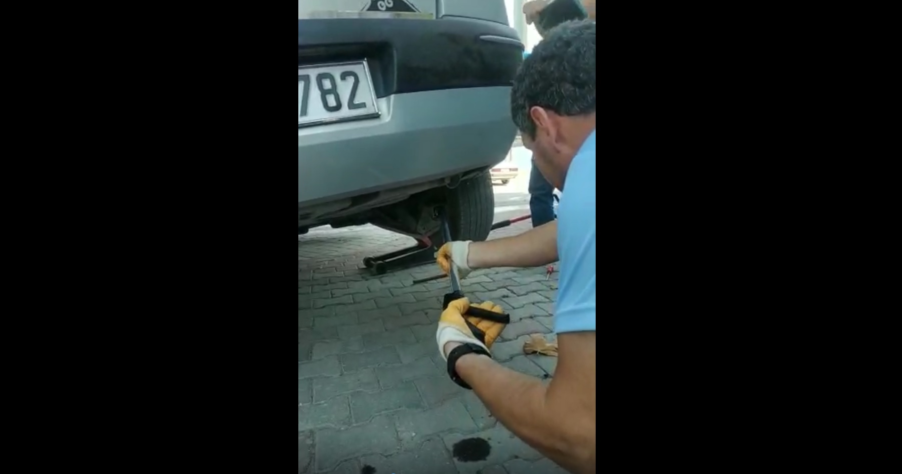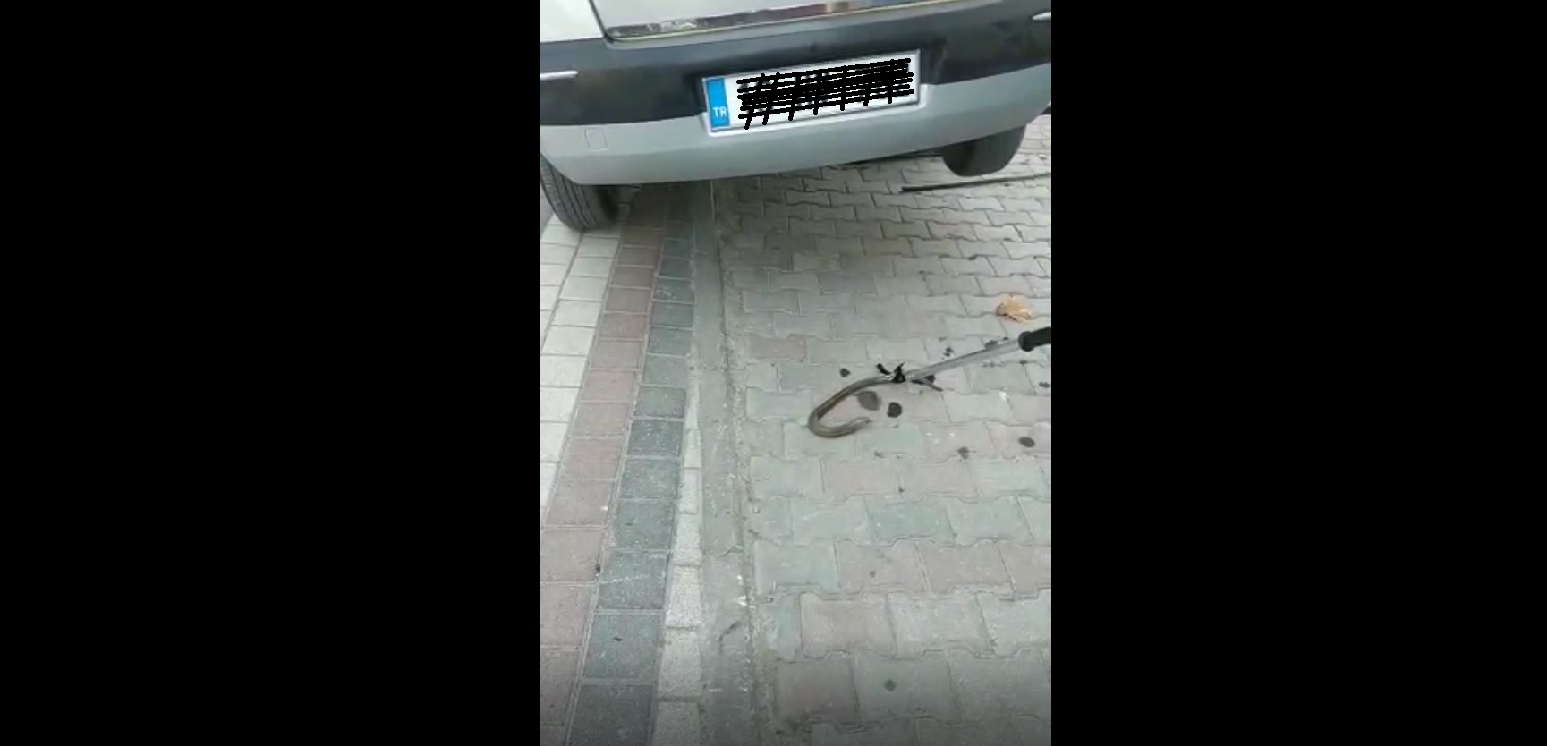 İnegöl’de Orhaniye Mahallesi Baykut Sokak üzerinde bir otomobilde, vatandaşlar aracın arka kısmında aksın içerisinde yılan olduğunu fark etti.