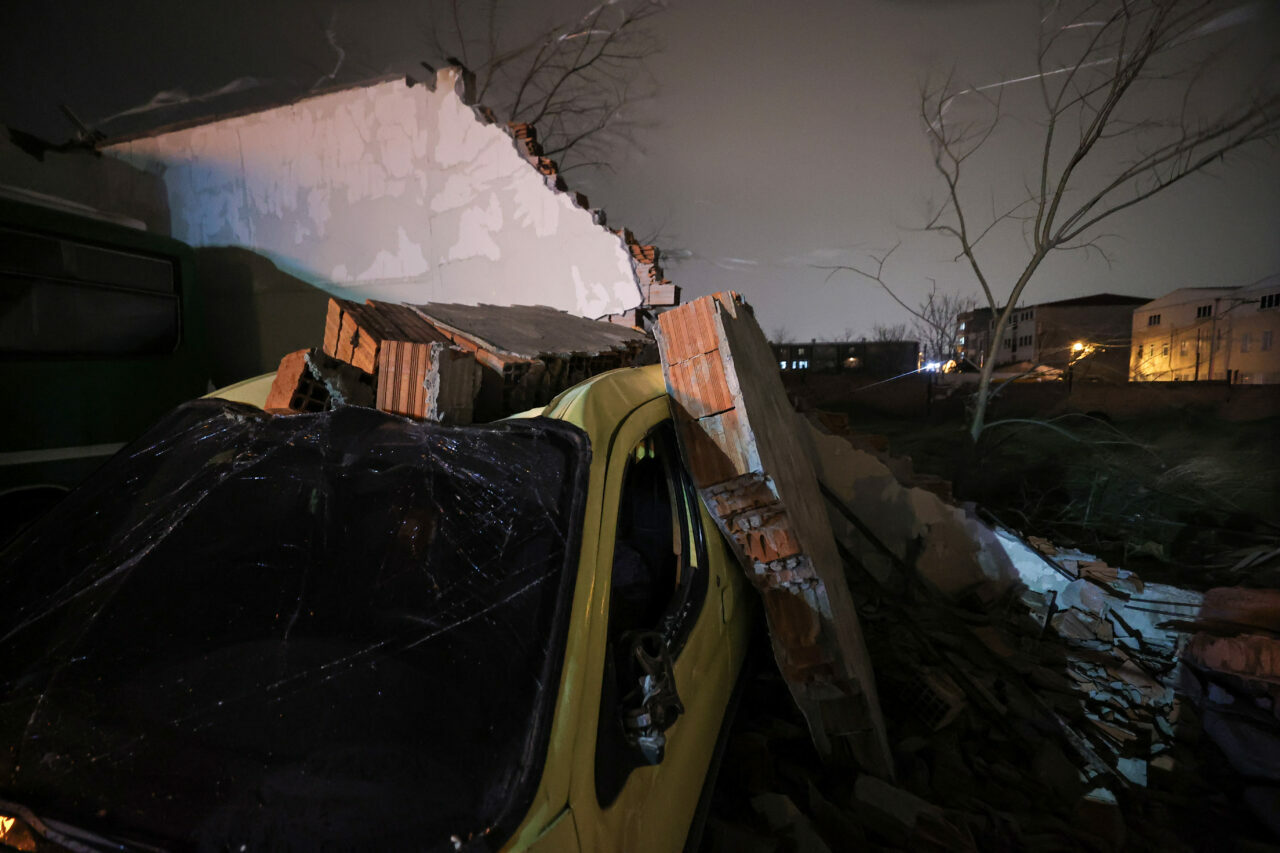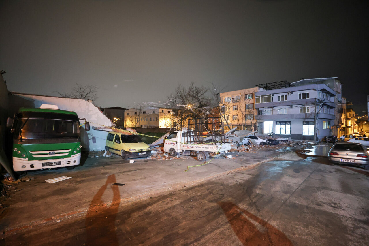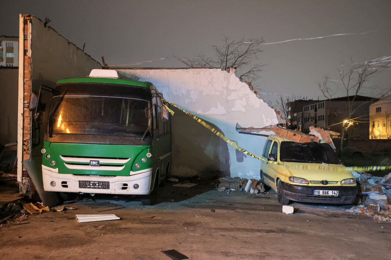 Arabayatağı Mahallesi Asil Sokak’ta bir oto servisinin otoparkının yaklaşık 5 metre yükseliğindeki duvarı kuvvetli rüzgar nedeniyle devrildi.