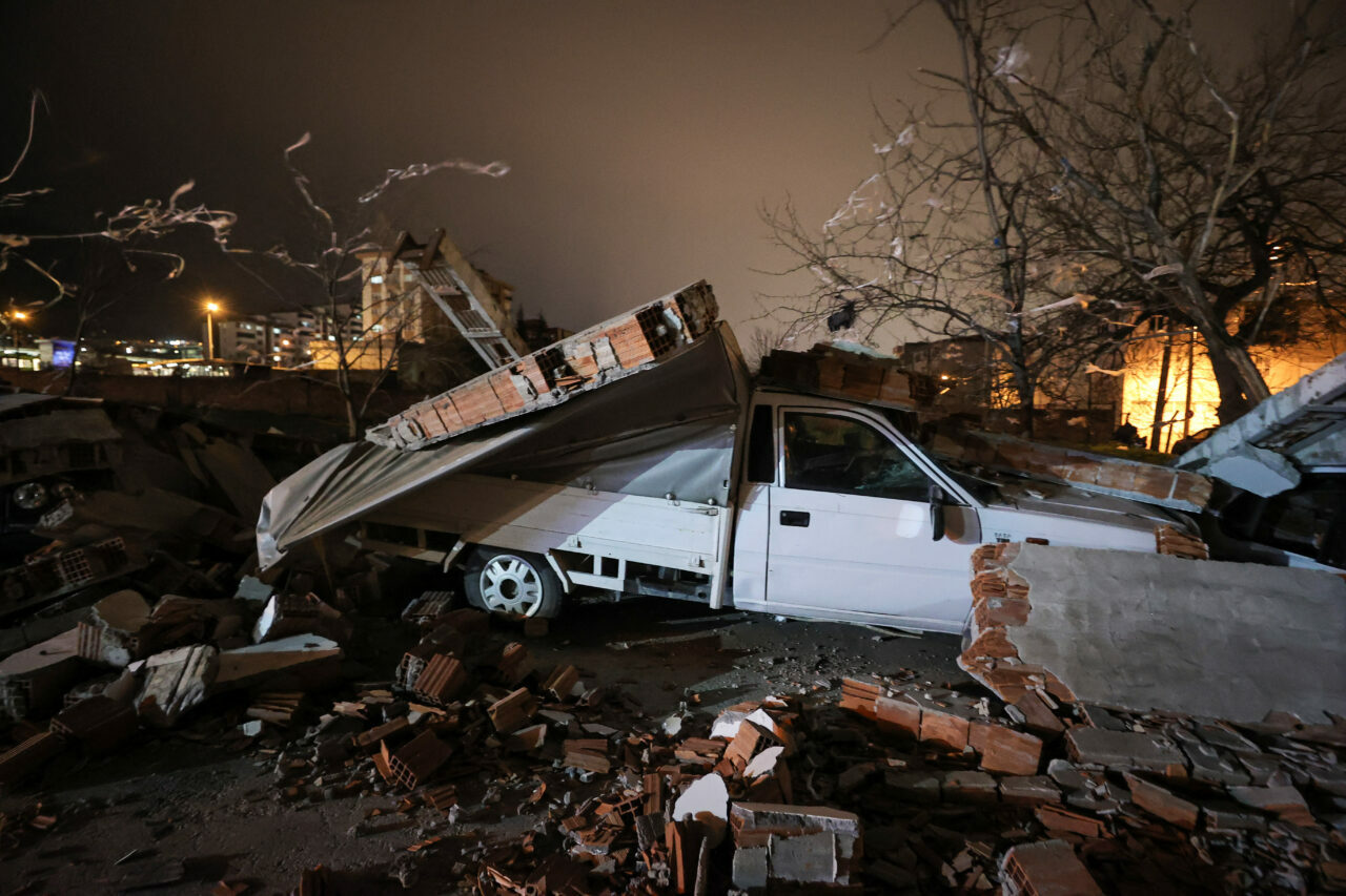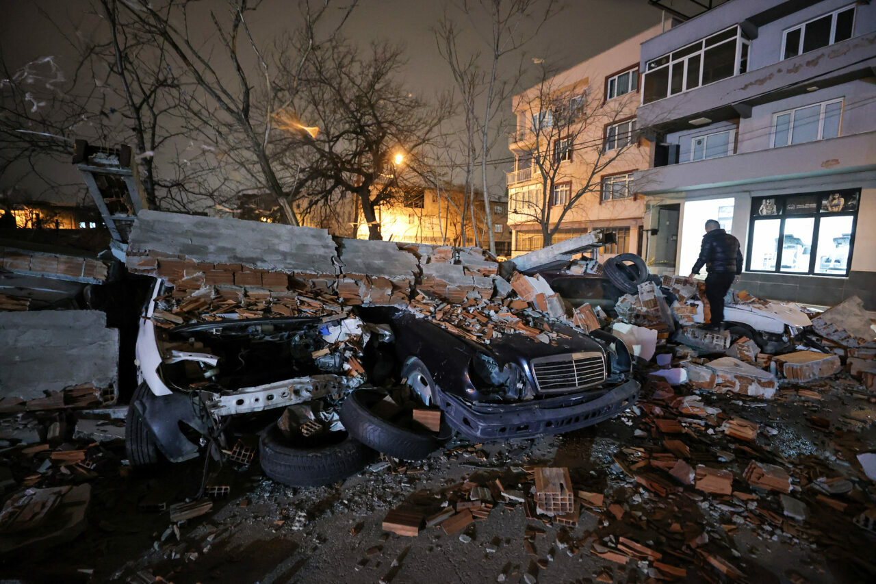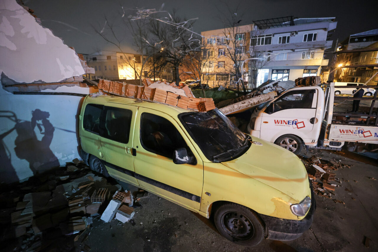 Duvar kenarında park halinde bulunan otomobil, minibüs ve pikap türü 10 araç molozların altında kaldı.