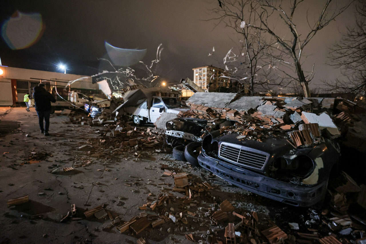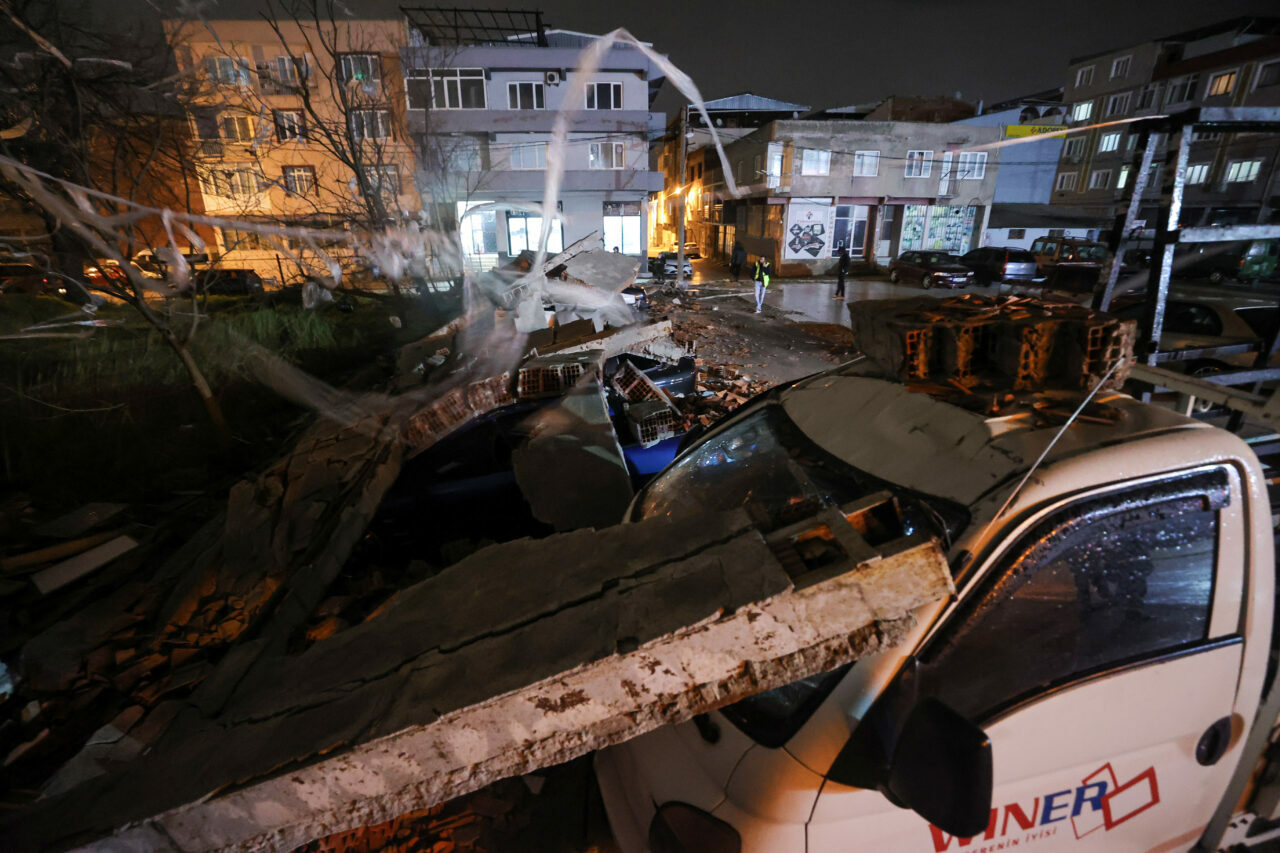 İtfaiye ve belediye ekiplerince çevreye saçılan parçalar temizlendi, araçların rüzgar ve sağanak yağışın sona ermesiyle bulundukları yerden çıkarılacağı öğrenildi.