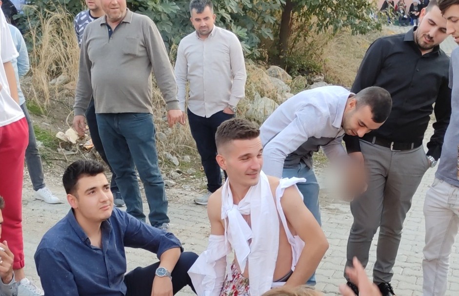 Gelin aracının önünde 6 saat eğlenen köyün gençleri bu esnada bol bol eğlenip damada yapmadığını bırakmadı. Damadın kıyafetlerini yırtan gençler bu şekilde damada gelin aracının önünde piknik tüpünde menemen yaptırdı. Havanın kararmasıyla birlikte eğlence sona erdi.