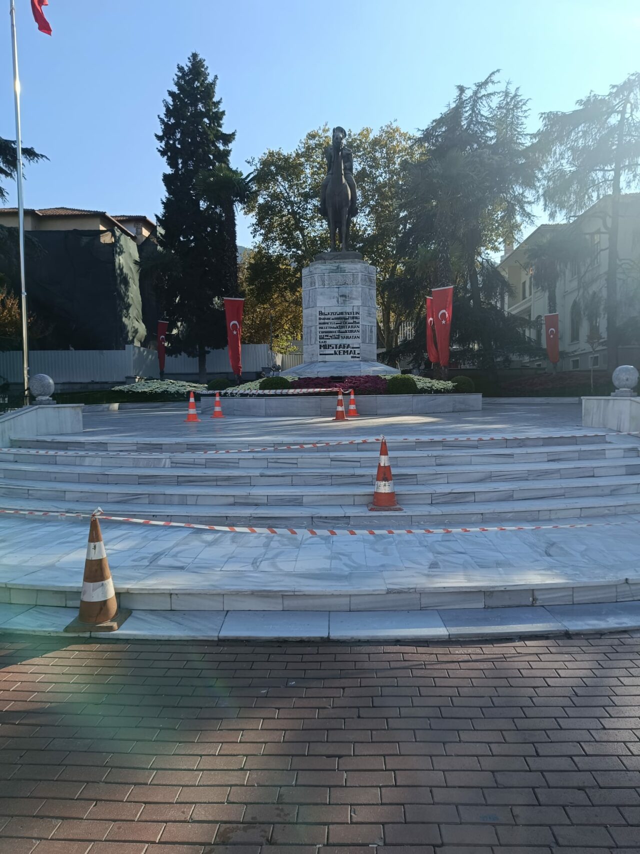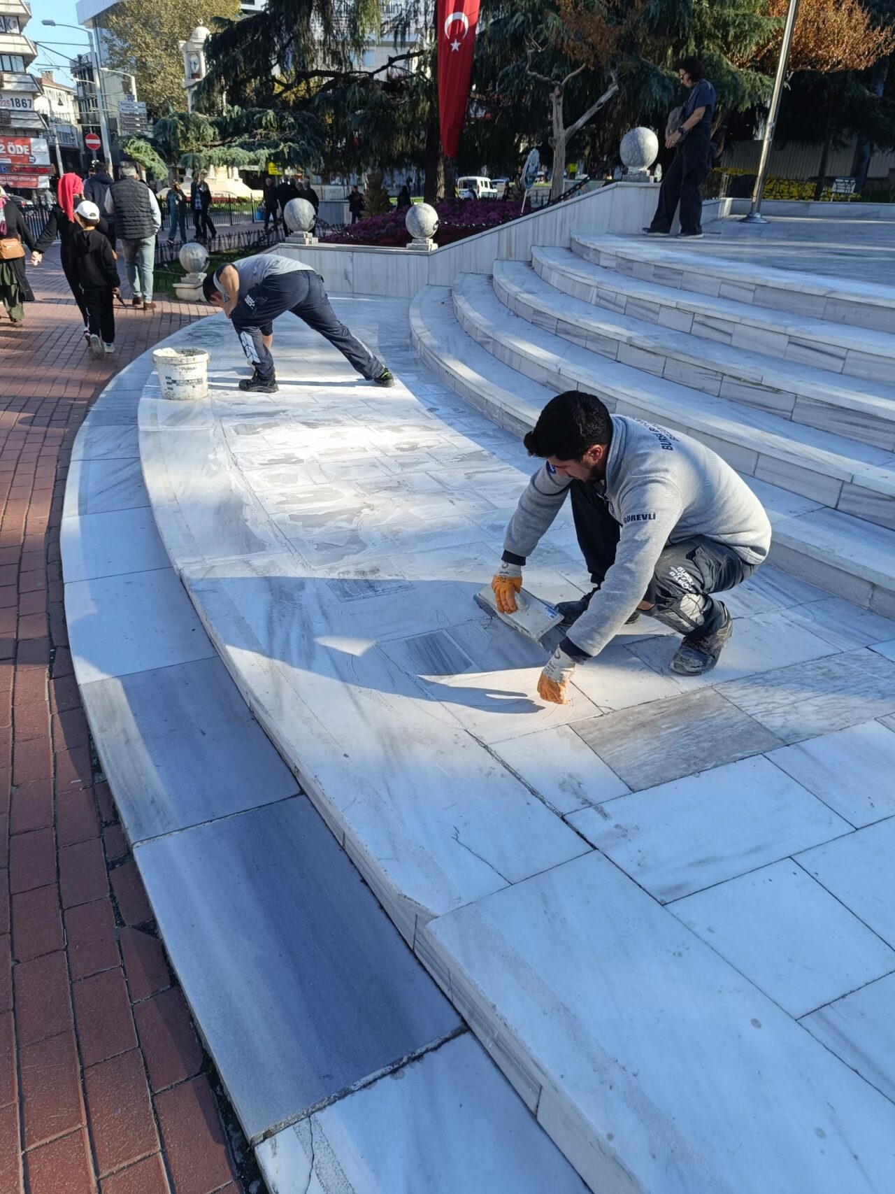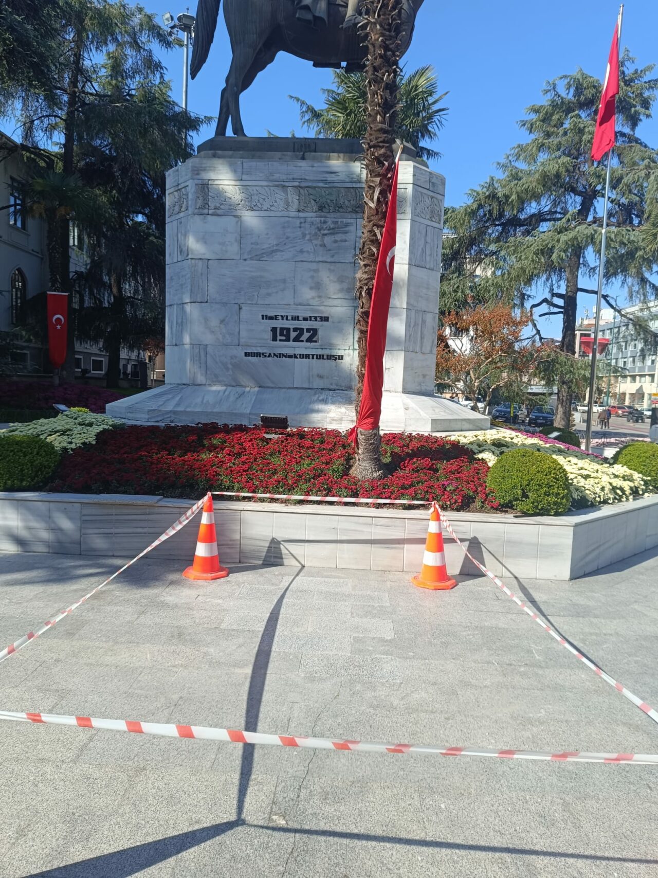 Büyükşehir Belediyesi Park ve Bahçeler Dairesi Başkanlığı Kent Estetiği Şube Müdürlüğü ekipleri, Bursa’nın merkezinde bulunan Atatürk Heykeli’nin etrafında kırılan mermerleri tek tek sökerek değiştirdi.