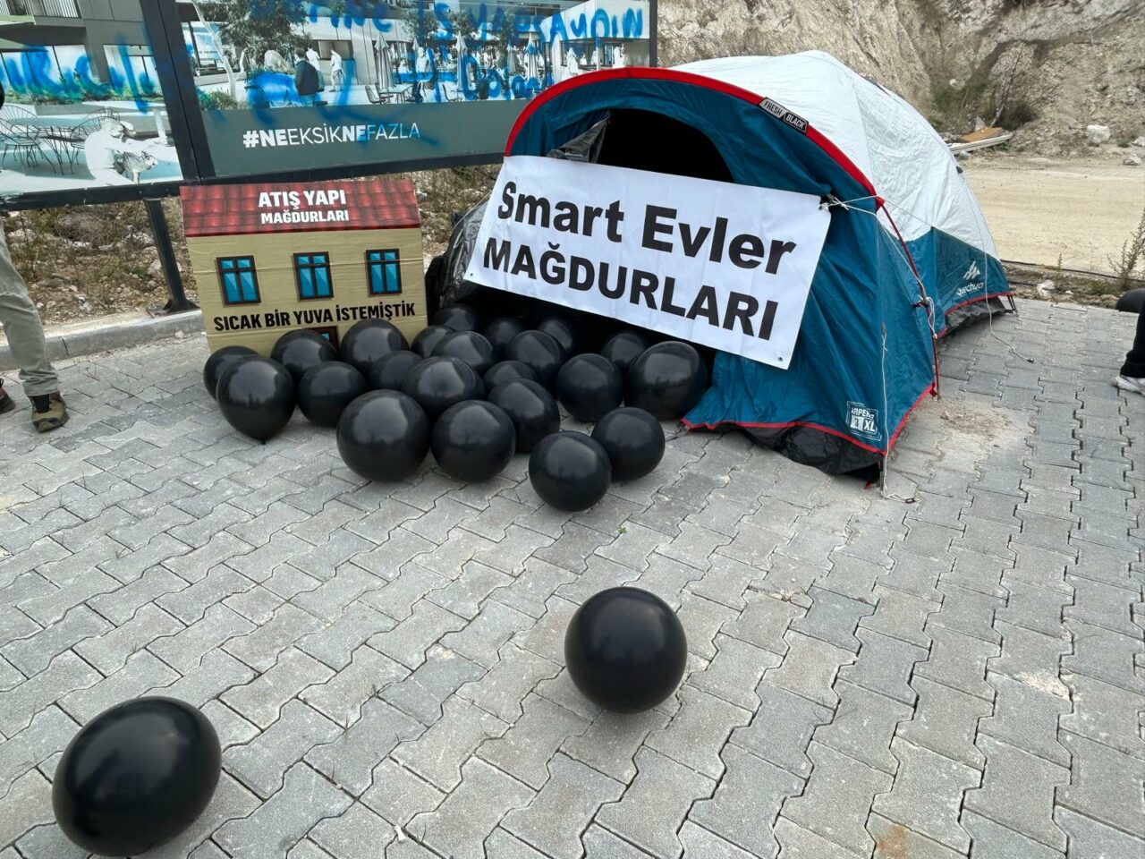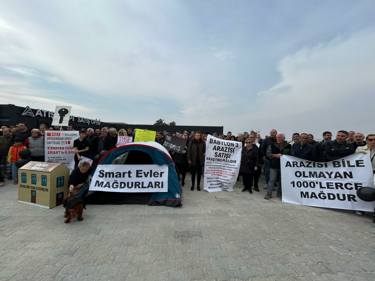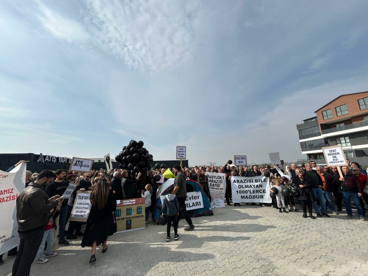 Atış Yapı mağdurları eylemlerine devam ediyor. Kayapa Smart Ev projeleri önünde bir araya gelen mağdurlar gerçekleştirdikleri basın açıklamasıyla mücadelelerini sürdüreceklerini söylediler.