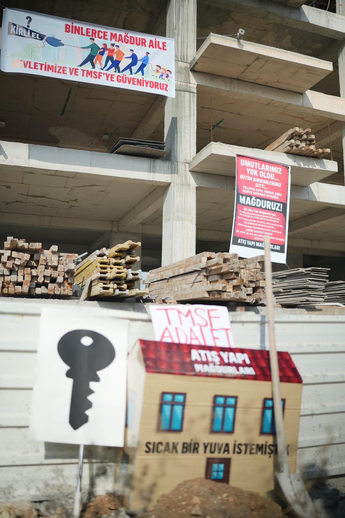 16 Haziran’da konkordato ilan eden Atış Yapı’nın, o günden bu yana kendilerini oyaladığını, yanılttığını ve susturduğunu kaydeden Ardıç, “Biz de inandık, güvendik ama kandırıldık. Şirket yöneticileri dolandırıcılık suçlamasıyla tutuklandı, firmaya kayyım atandı. Aradan geçen 5 ayda bir çivi bile çakılmadı. Şantiyeler suskun, umutlarımız tükeniyor. Evimiz bitsin dedik, umutlarımız bitti. Kirada oturanlar var; hem kira hem senet ödeyenler var. Psikolojimiz altüst oldu, hayat düzenimiz bozuldu. Bu kadar insanın hayalleriyle oynamaya kimsenin hakkı yok. Kamu, devlet ve denetleyici kurumlar bu süreci zamanında takip etmeliydi. Artık seyretmek yok. Devlet müdahale etmeli, bu utanç bir an önce sona ermeli. Biz yılmadık, yılmayacağız. Demokratik zeminde hakkımızı arayacağız; kamuoyu oluşturacağız, haklarımızı talep edeceğiz, hukuki yolları kullanacağız. Biz korkmuyoruz, susmuyoruz, vazgeçmiyoruz. Taleplerimiz net. Biz devlete, yargıya inanıyoruz. Adalet tecelli etsin. İnşaatlar yeniden başlasın. Mağduriyetimiz giderilsin. Biz sadece bedelini alın terimizle ödediğimiz evlerimizi istiyoruz” diye konuştu.