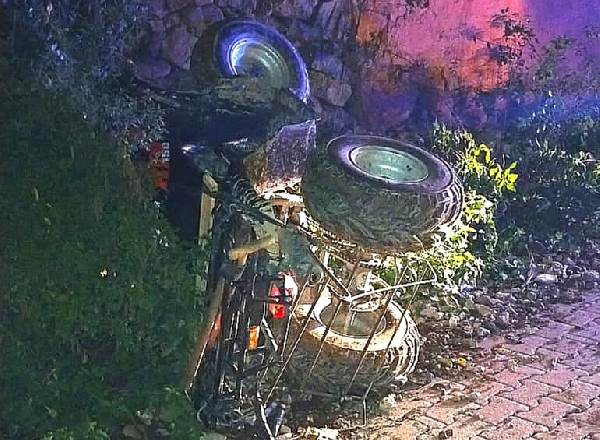 Havanın kararmasıyla birlikte eşiyle eve dönmekte olan İsmail Durgut yönetimindeki ATV, bayır yukarı çıkarken kontrolden çıkarak devrildi. Kazada sürücü ile eşi ağır yaralandı.
