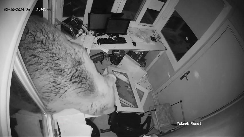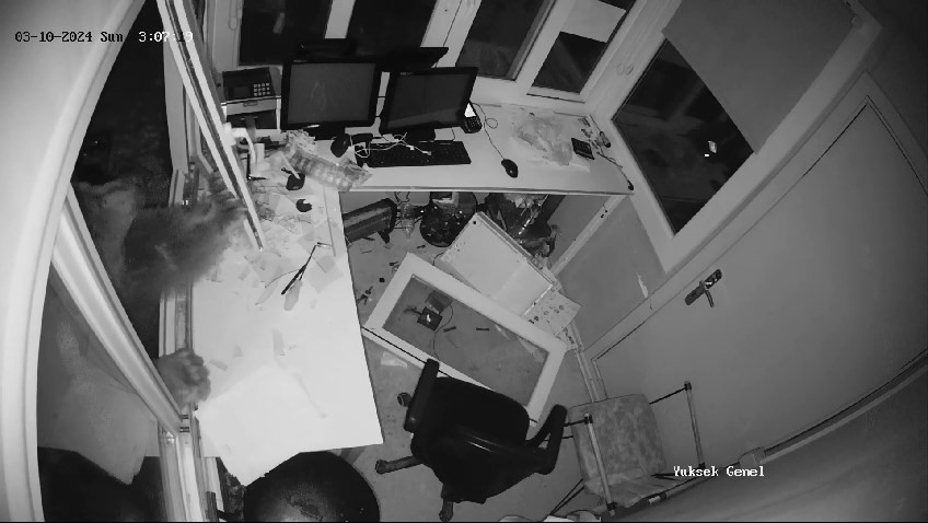 Güvenlik kameralarına yansıyan son görüntüler, Sarıalan Bölgesinde kayda alındı. 2 yavrusu ile birlikte yiyecek arayan ayı, önüne gelen ne varsa yıktı geçti. Yavrularını doyurmak için yiyecek bulmak zorunda olan yetişkin ayı, çöp konteynerlerinde bir şey bulamayınca, Macera Park’ın güvenlik kulübesine girmeye çalıştı. Gişenin camını zorlayarak indiren ayı, içeri giremeyince diğer camı da zorlayarak kırdı.