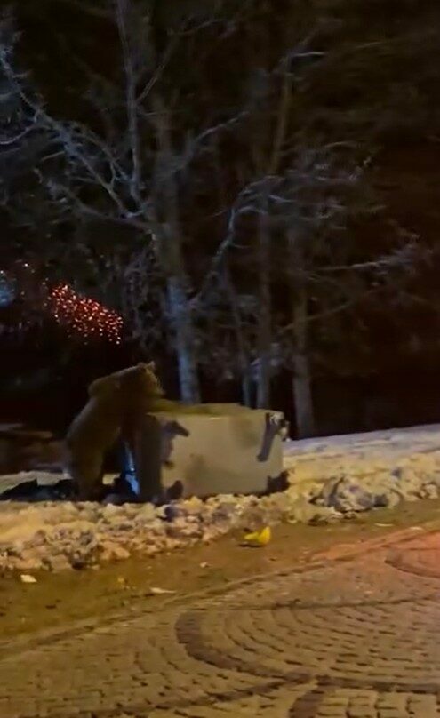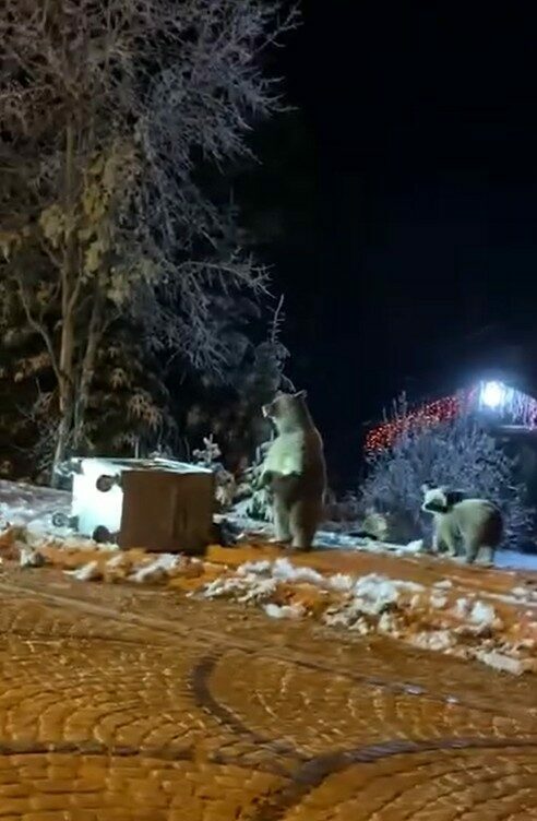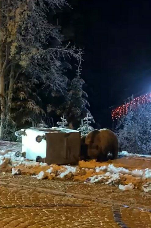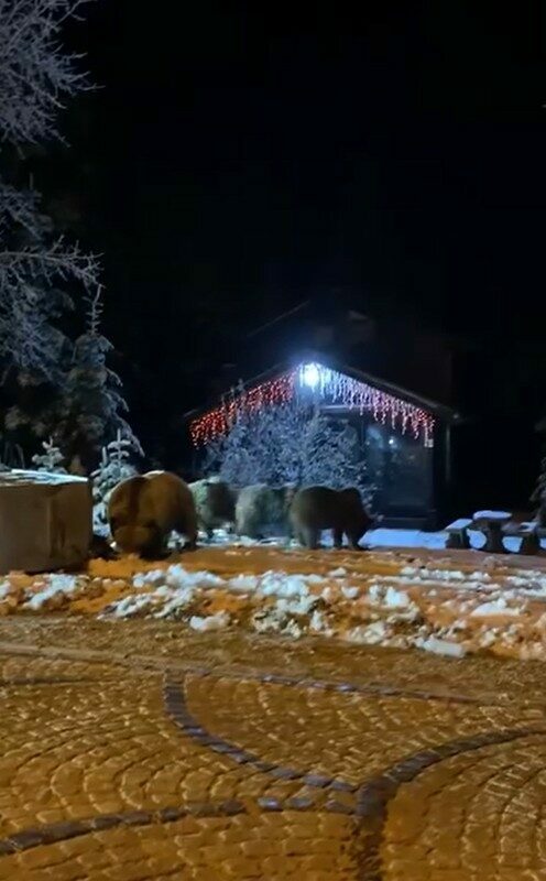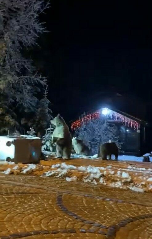 Kar topunun denk geldiği bir ayı korktu. Başka bir ayı ise ayağa kalkarak kar topunun atıldığı tarafa doğru baktı.