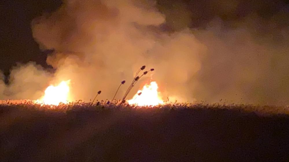 Yangının söndürülmesinin ardından kuvvetli rüzgarın etkisiyle sazlıklar akşam yeniden yanmaya başladı.