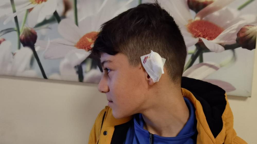 Yapılan incelemede sol kulağında doku kaybı oluşan genç tedavinin ardından plastik cerrahi bölümüne sevk edildi.