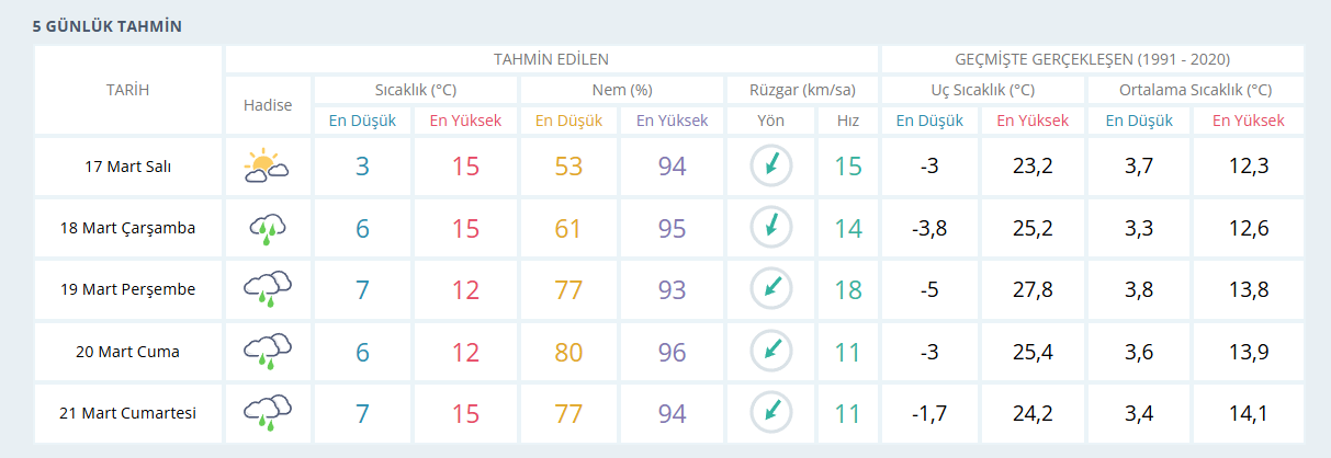 İşte Meteoroloji Genel Müdürlüğü’nün Bursa için yayınladığı 5 günlük hava tahmin raporu: