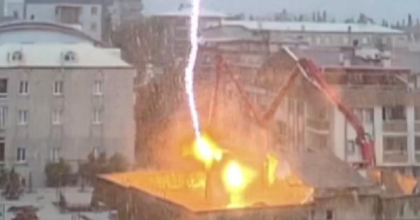 Düşen yıldırımlardan biri, mahalledeki 3 katlı bir binanın üstüne isabet etti. O anlar ise, mahalle sakinlerinden Seyhan Sivrikaya’nın cep telefonu görüntülerine yansıdı.