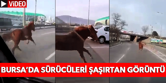 Bursa-Ankara yoluna çıkan başı boş atın sol şeritten koşması dikkatlerden kaçmazken, bu anlar kameralara an be an yansıdı.