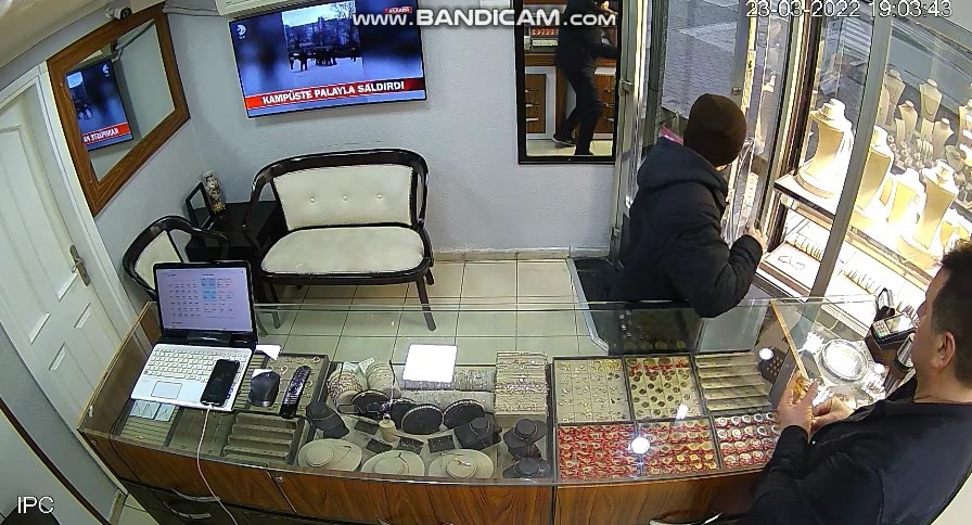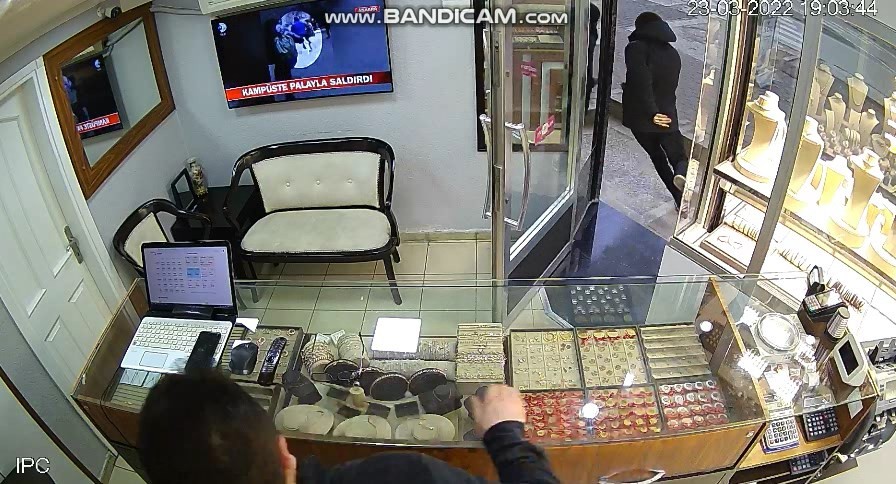 Öte yandan, kuyumcudan altın bileziklerin çalındığı anlar, iş yerinin güvenlik kamerasına yansıdı.