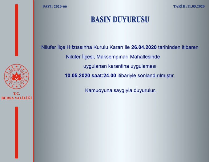 Ana Sayfa › Gündem › Bursa’da bir mahallede karantina sona erdi!Bursa’da bir mahallede karantina sona erdi! Bursa Valiliği Twitter hesabından açıklama yaptı. Giriş: 11-05-2020 16:36Güncelleme: 11-05-2020 18:33Kaynak: Gündem ABONE OL + - İşte o açıklama: HABERİ PAYLAŞ