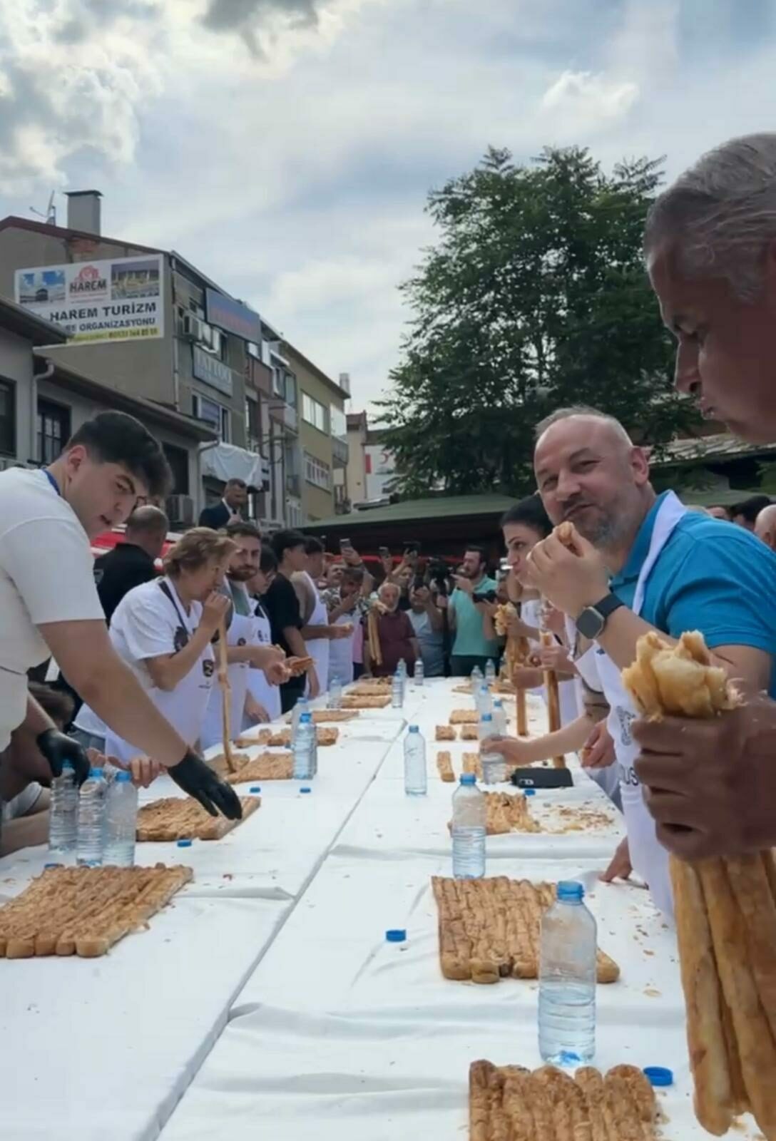 Toplam 40 adayın katıldığı yarışmada 5 dakikada 11 metre börek yiyen Ali Kılıç, 1’inci olup 10 gram altın kazandı.