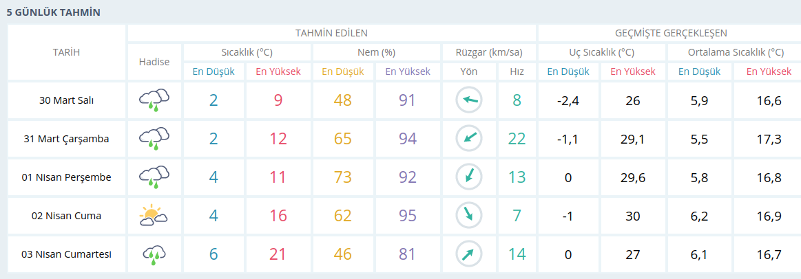BURSA İÇİN 5 GÜNLÜK HAVA TAHMİN RAPORU