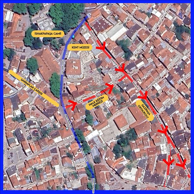 2023/55 Sayılı UKOME Kurul Kararı ile çarşı bölgesinde yapılan düzenlemeyle Yenice Mahallesi Demircizade Sokak, Orta Sokak ve 1. Okul Sokak tek yön oldu.