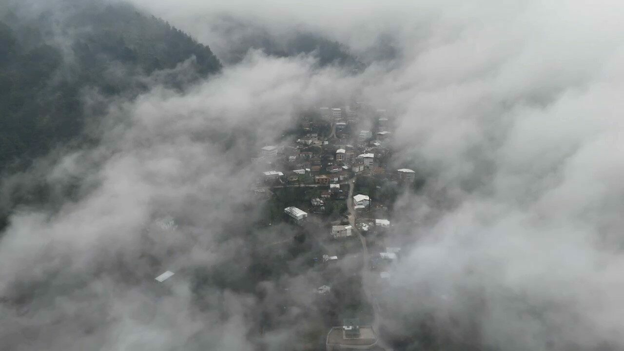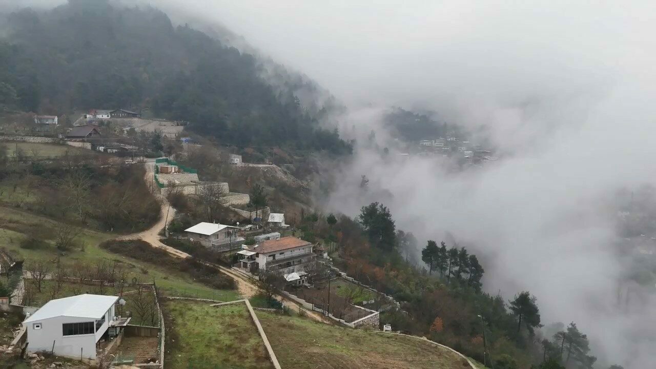 Bursa’da yüksek rakımdan dolayı bulutların içerisinde kalan Gökçeören Mahallesi adeta Trabzon yaylalarını andırdı.