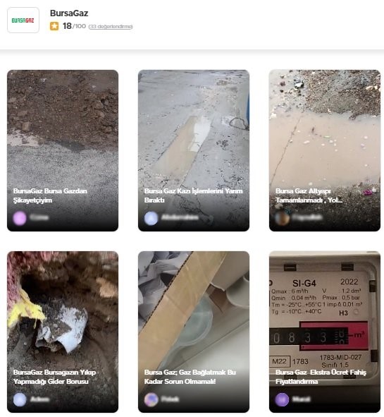 Türkiye’de örnek uygulamaları hayata geçirmeyi hedefleyen Bursagaz, 1,2 milyonun üzerinde abonesine yaptığı hizmetler ise vatandaşı canından bezdirdi. Temiz bir gelecek için karbon emisyonlarının azaltılması, atık yönetimi, geri dönüşüm, iş sağlığı ve güvenliği, proses güvenliği, enerji ve kaynak verimliliği konularında yaptıkları yenilikçi yatırımlara rağmen, vatandaşı memnun edemedi. Sosyal medya ve internet ortamında yapılan yüzlerce şikayet, insanların neler yaşadığını gözler önüne serdi. Kimi sokağının köstebek yuvasına çevrilmesinden, kimi fazla yansıtılan faturadan, kimi kaçak kullanmadığı halde kaçak tüketimden yaka silkti.