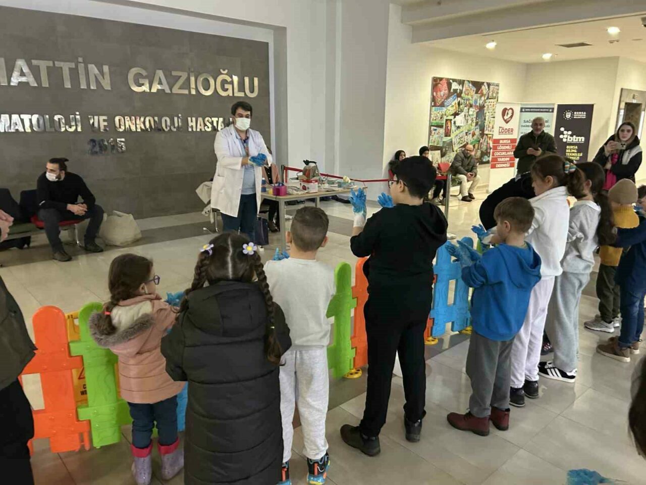 Bursa Uludağ Üniversitesi Sabahattin Gazioğlu Çocuk Hematoloji ve Onkoloji Hastanesi’nde tedavi gören çocuklar, kendileri için özel hazırlanan atölyelerde keyifli zaman geçirdi. Mikroskop ile hazır konuma getirilmiş numuneleri inceleyen çocuklar, uzmanlar eşliğinde doğru el yıkama tekniklerini öğrendi.