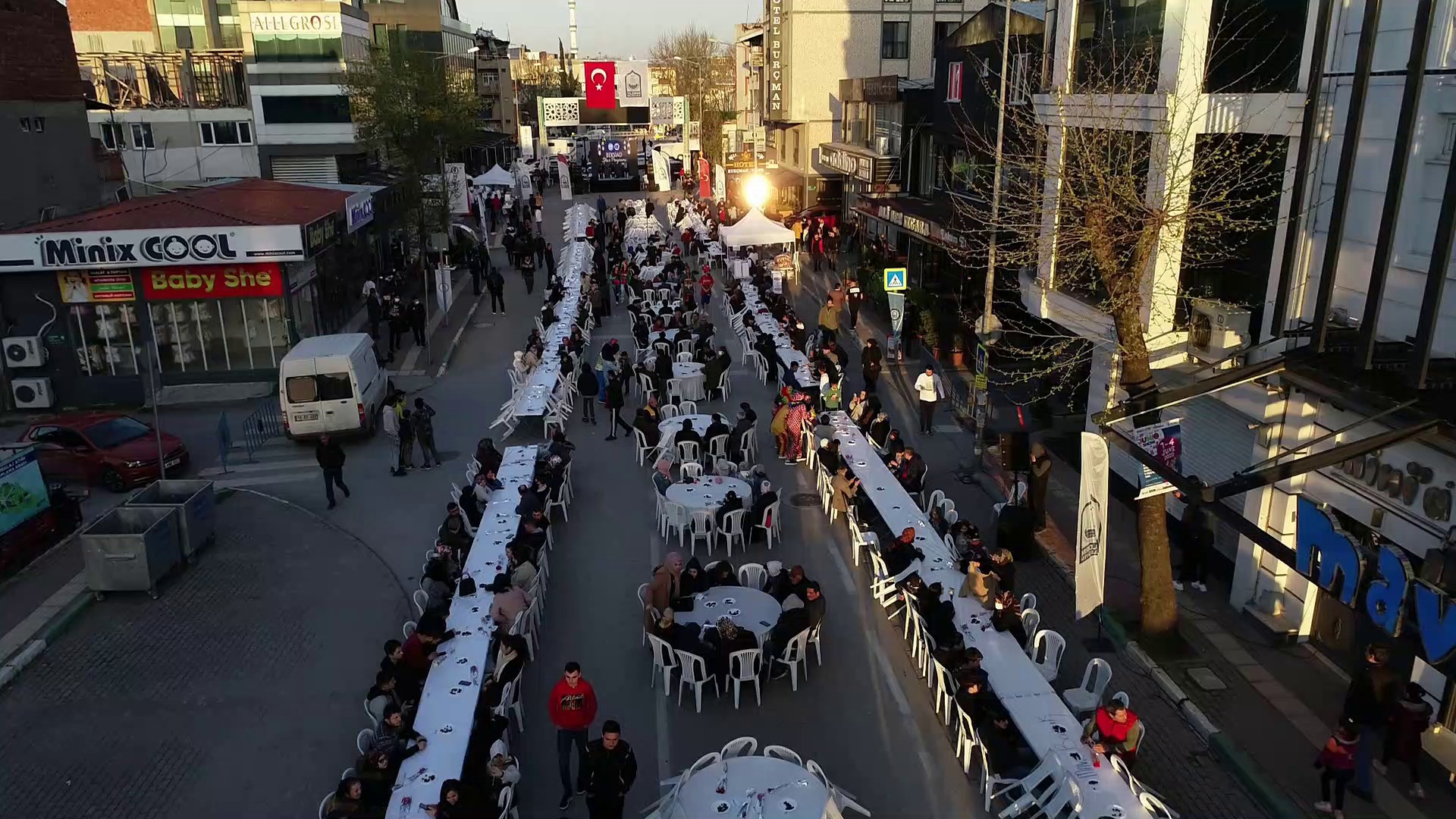 Dev iftar organizasyonu sebebiyle 3 kilometre boyunca masalarda sofra kuruldu.