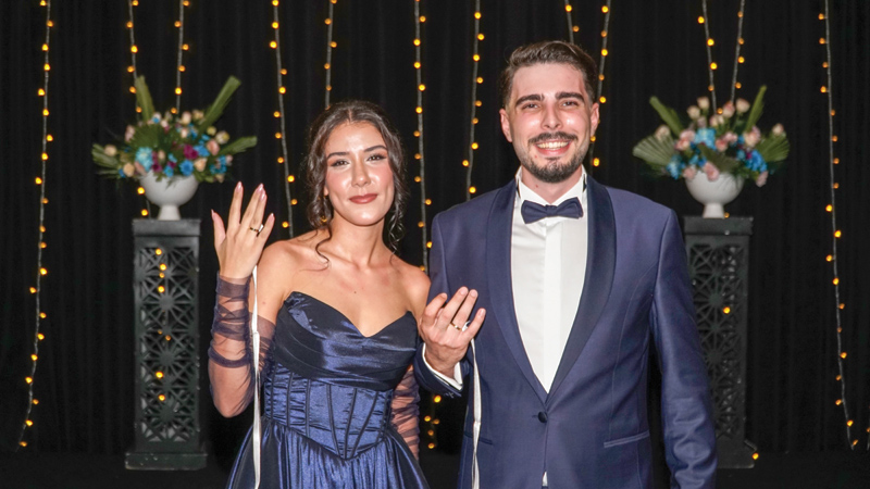 Yüzük tepsisini ise Çağla Taşdemir’in yakın arkadaşı Esra Şaru’nun taşıdığı törende nişan yüzüklerini Mesut Uzunbay taktı. Gecenin açılış dansını ise Nilüfer’in Son Arzum şarkısıyla beraber şık bir koreografiyle gerçekleştiren çift unutulmaz anlara imza attı. Damat Görkem Berber’in ailesi Refik ve Fatma Berber, gelin Çağla Taşdemir’in ailesi Cengiz ve Seyhan Taşdemir, abisi Cenk Taşdemir ve yakın akrabaları bu mutlu günde çiftin yanında yer alarak tebriklerini iletti. Europark Hotel’in şık atmosferinde gerçekleşen nişan töreni, samimi ve coşkulu anlara sahne oldu.