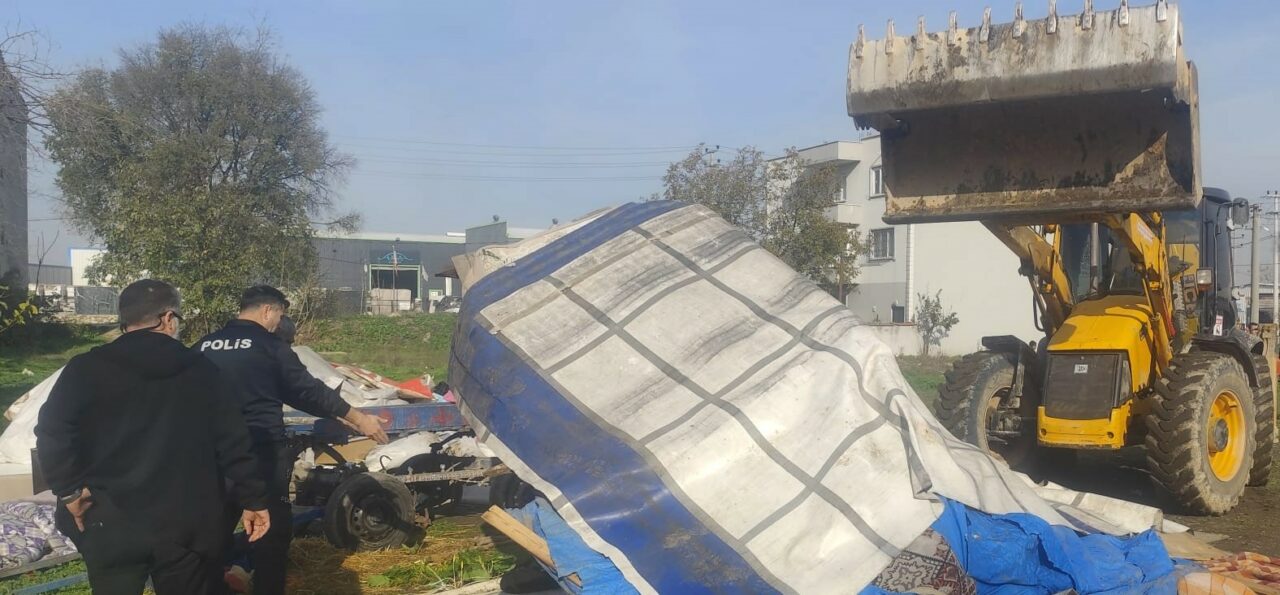 Mahallede konar göçer şekilde kurulmuş çadır ve barakalara müdahale eden ekipler, bölgenin temizliğini sağlamak amacıyla titiz bir çalışma yürüttü.