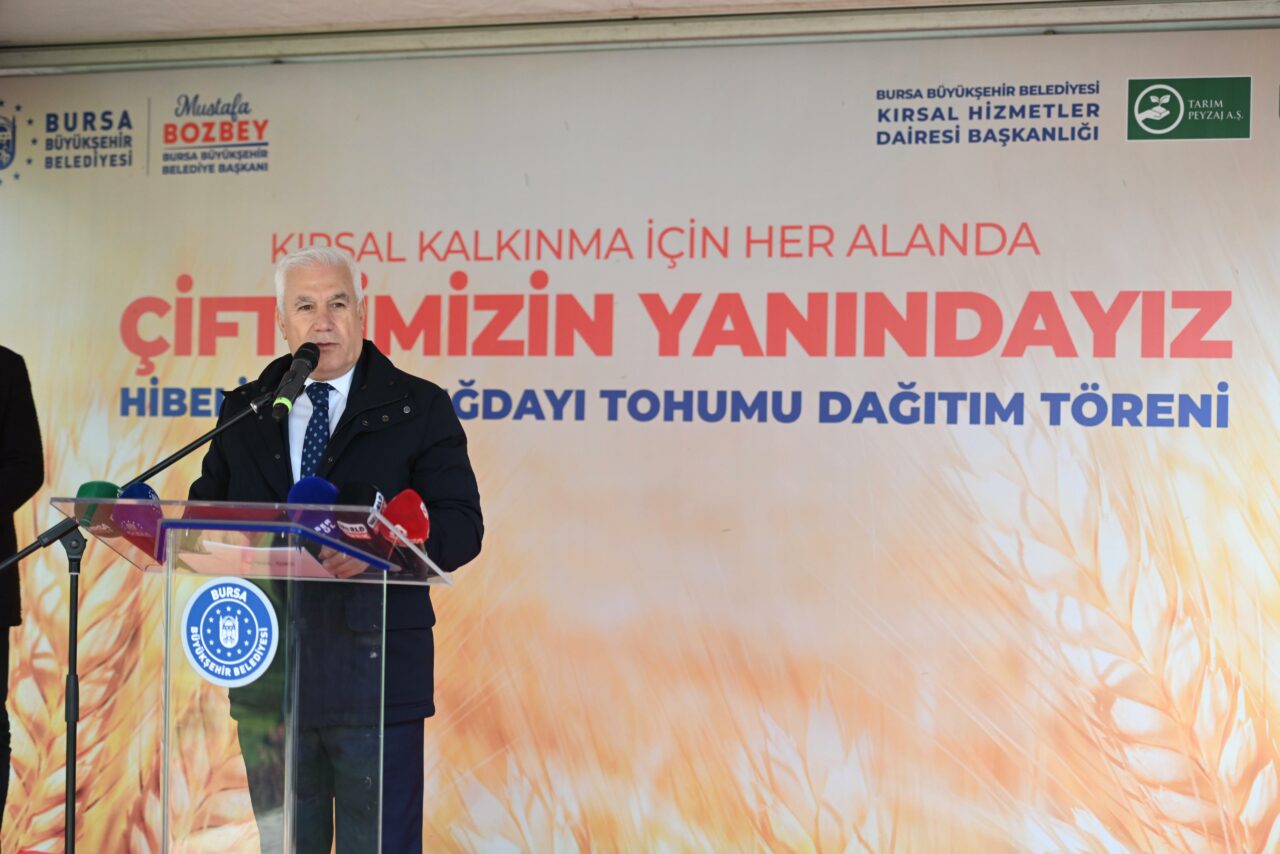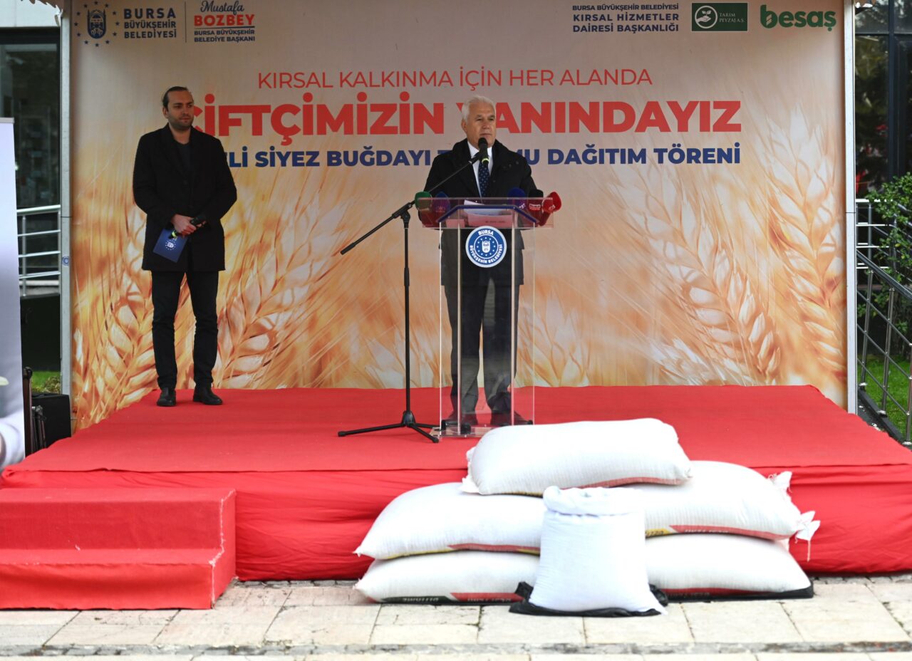Bursa Büyükşehir Belediye Başkanı Mustafa Bozbey, Bursa’nın bereketli topraklarında üreten ellerin emeğine destek olmaya ve bu toprakların potansiyelini daha da artırmaya devam edeceklerini söyledi. Anadolu’nun kadim tohumlarından biri olan siyez buğdayının, binlerce yıllık geçmişiyle özel bir değer olduğunu belirten Başkan Mustafa Bozbey, 10 bin yıldır tarımı yapılan siyez buğdayının bugün kullanılan modern buğdayın atası olduğunu hatırlattı. Genetik yapısında herhangi bir değişim olmadığından GDO içermediğini ifade eden Başkan Bozbey, “Siyez buğdayının üretimini destekleyerek hem tarımsal çeşitliliği korumak hem de sağlıklı ve besleyici gıdalara erişimi artırma hedefindeyiz. Bu projeyle yaklaşık 233 hektarlık alanda üretim yapılacaktır. Belediye olarak üreticilerimize yüzde 75 hibe oranıyla destek oluyoruz. 25 üreticimize 5850 kilogram siyez buğdayı tohumu dağıtıyoruz. Ekilen tüm siyez buğdayını Bursa Büyükşehir Belediyesi olarak alacağız. Üreticimize hem destek olacağız hem de Bursalılara sağlıklı ürünü götürmüş olacağız. Bu toprakların bereketini geleceğe taşıyan çiftçilerimizdir” dedi.