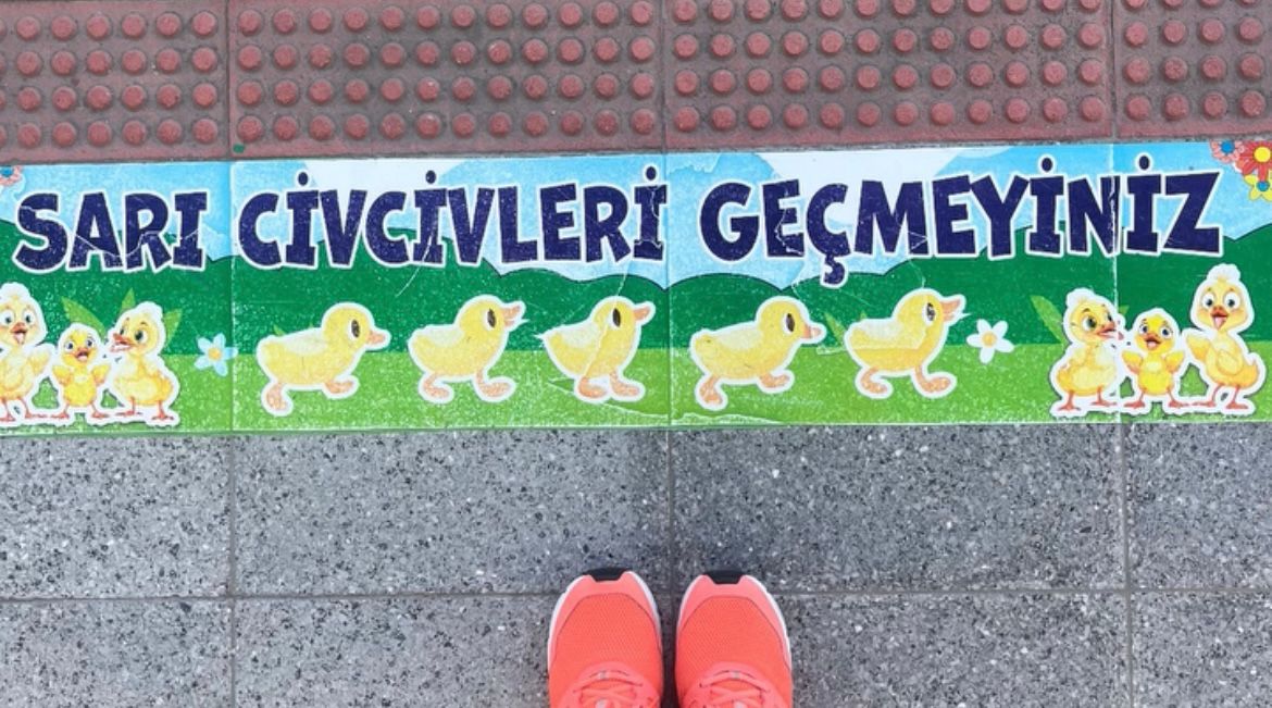 Öte yandan sefer anonsları da çocuk sesiyle yapılırken, istasyondaki işaret levhaları da “sarı civcivleri geçmeyin” şeklinde çocuk dilinden yeniden tasarlanmış haliyle yer zemininde bulunuyor.