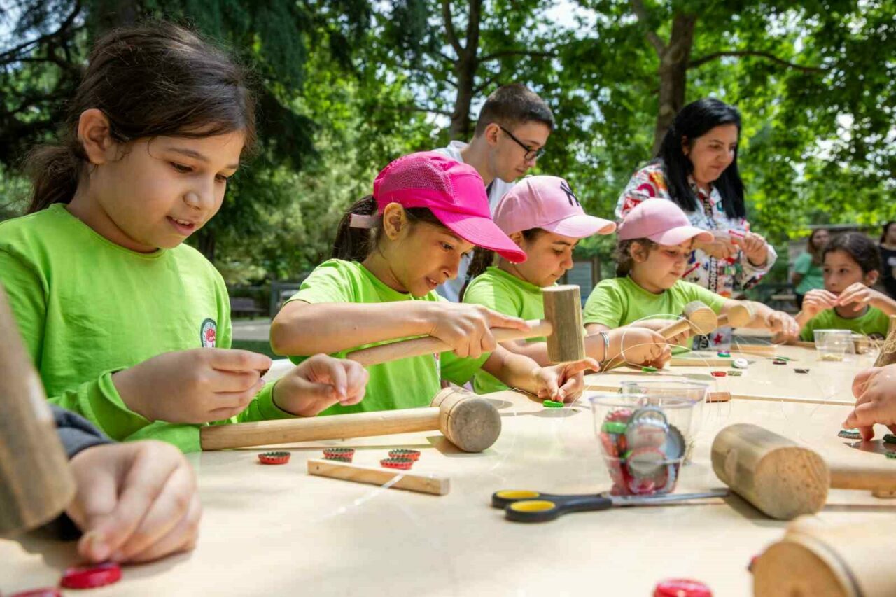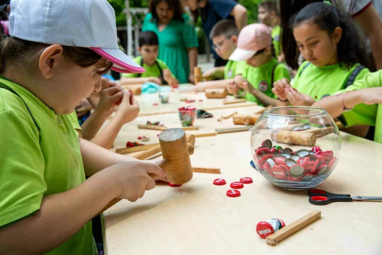 Atölyelere katılan Yusuf Köstem İlkokulu öğrencileri, atık malzemelerden müzik aleti yaparak geri dönüşümün önemini uygulamalı bir şekilde öğrendi.